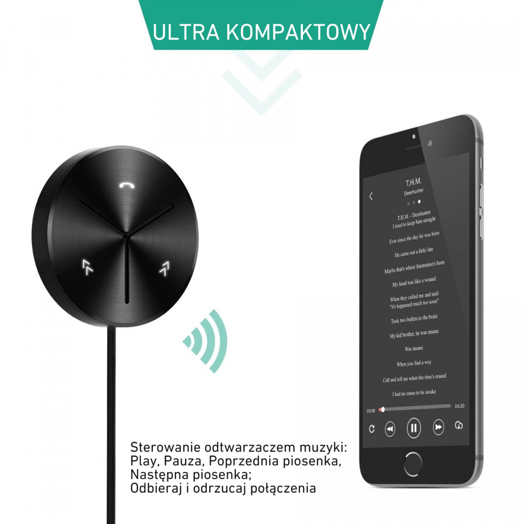 Jeśli na swoich urządzeniach mobilnych przechowujesz całą masę utworów muzycznych i chciałbyś odtwarzać je bezprzewodowo za pomocą znajdującego się w aucie systemu stereo, adapter samochodowy Bluetooth Aukey BR-C8 będzie dla Ciebie rozwiązaniem idealnym. Do dyspozycji masz tu wielofunkcyjny przycisk do sterowania odtwarzanymi utworami (włącznie z ustawianiem głośności), a także przyciski pomijania ścieżek. Bluetooth 4.1 zapewni Ci szybkie, proste, a na dodatek energooszczędne połączenie dla wszystkich kompatybilnych urządzeń z zasięgiem bezprzewodowym do 10 metrów. A skoro o kompatybilności mowa, w przypadku BR-C8 od Aukey jest ona naprawdę szeroka - ten adapter samochodowy działa ze wszystkimi urządzeniami obsługującymi technologię Bluetooth: smartfonami z systemem Android, Apple, iPhone 6, iPhone 6 Plus, iPhone 6S, Samsung Galaxy, HTC, notebookami, tabletami itp.
