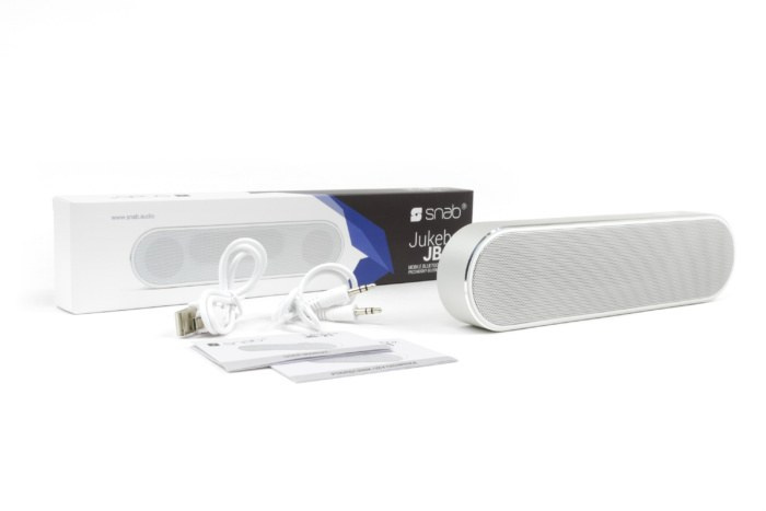 Snab Jukebox JB-21 to przenośny, działający w najnowszym standardzie Bluetooth 4.2 głośnik, który pozwala cieszyć się wyjątkową jakością i głośnością dźwięku. Mimo smukłej, aluminiowej obudowy o małych wymiarach i wadze Jukebox JB-21 może bez podłączenia do zasilania odtwarzać muzykę przez 4 godziny lub obsługiwać połączenia głosowe przez 10 godzin. Wbudowane złącze AUX pozwoli również na podłączenie Twojego smartfona lub innego urządzenia ze złączem minijack przy pomocy dołączonego kabla.