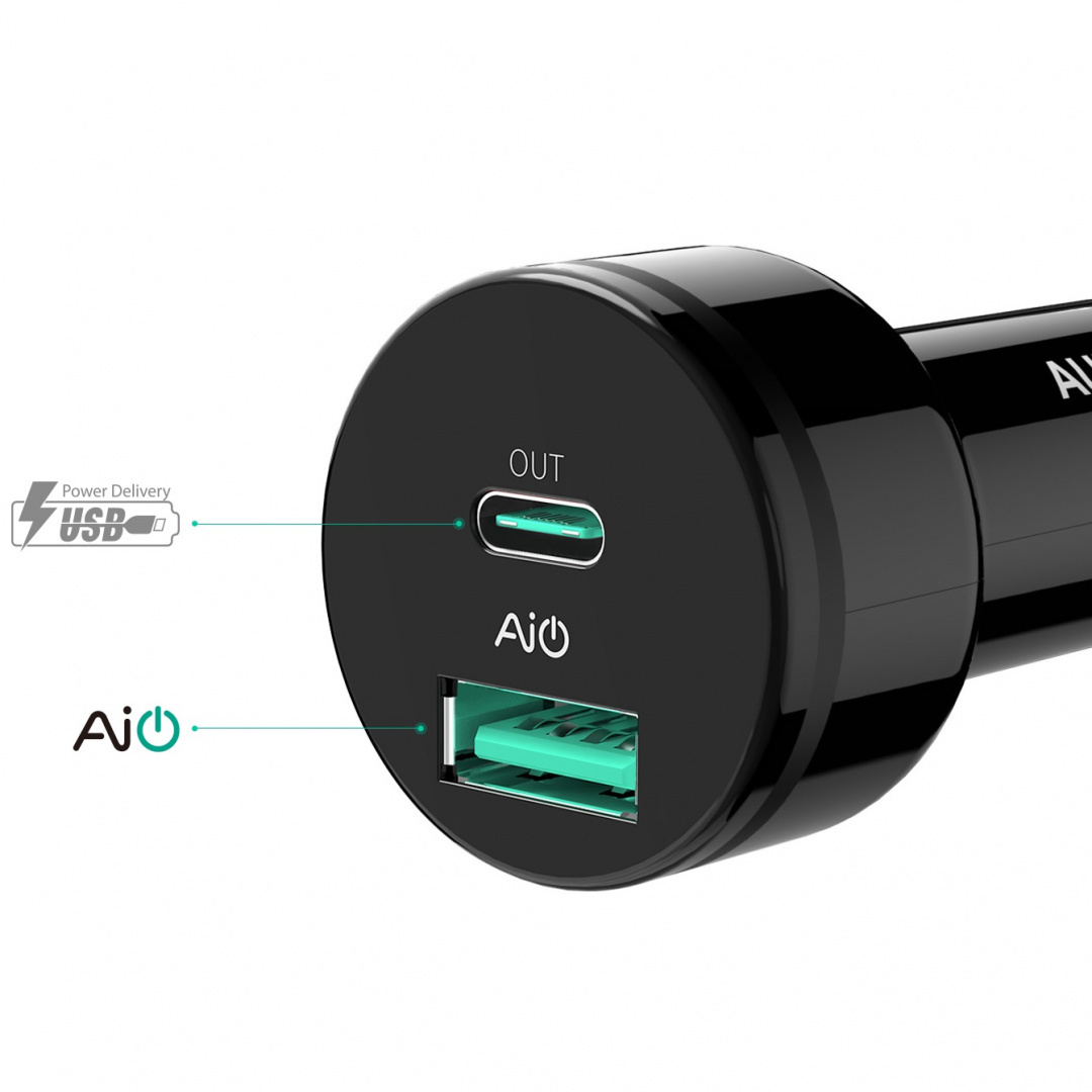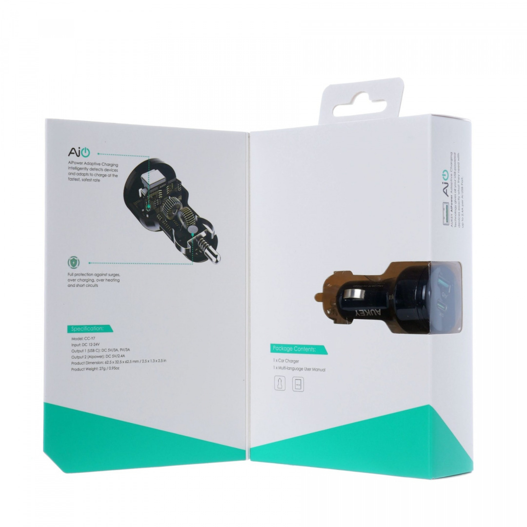 • Ładowarka samochodowa Aukey CC-Y7 36W Power Delivery 2.0 AiPower USB-C
