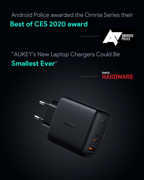 • Ładowarka sieciowa Aukey Omnia GAN PA-B3 65W USB-C Power Delivery 3.0