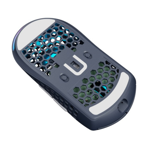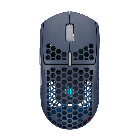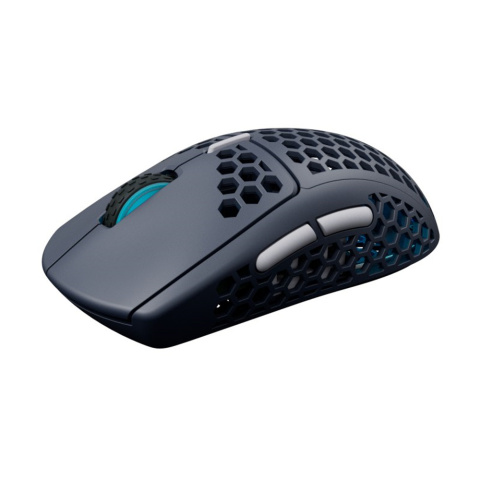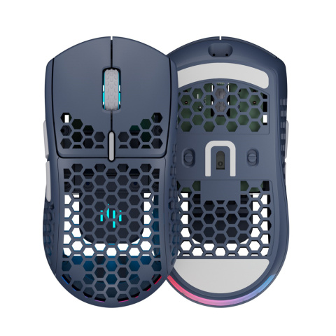 Zastosowana w ciemnoniebieskiej myszy bezprzewodowej Dark Project ME4 Wireless bateria 500 mAh pozwala utrzymać niską wagę urządzenia i zapewnia nawet do 60 godzin nieprzerwanej rozrywki przy maksymalnej częstotliwości odpytywania na poziomie 1000 Hz (czyli praktycznie bez opóźnień). Połączenie bezprzewodowe odbywa się za pomocą dołączonego do zestawu odbiornika USB, jednak istnieje też możliwość podłączenia myszy za pomocą elastycznego i lekkiego kabla Paracord (przez USB-C). W zestawie użytkownik znajdzie ponadto m.in. dodatkowe ślizgacze PTFE, przyciski i panel tylny bez struktury plastrów miodu oraz przejściówkę USB-C > USB-A.