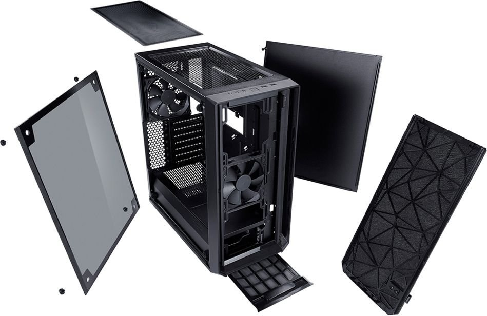 Obudowa Fractal Design Meshify C Blackout pozwoli Ci na instalację dodatkowych wentylatorów. Możesz więc śmiało eksperymentować z wydajnością i stale ją zwiększać. Istotnym faktem jest to, iż panele są wytworzone z materiału, który skutecznie tłumi dźwięk. Trudno będzie zatem, abyś usłyszał jakikolwiek hałas ze swoich komponentów.