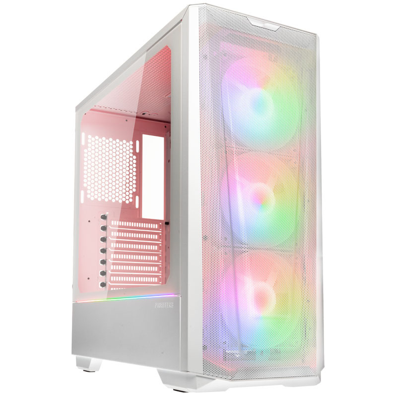 Zacznijmy od sterowalnego oświetlenia D-RGB, jako że w połączeniu z przemyślaną konstrukcją białej obudowy PHANTEKS Eclipse G360A White pozwala ono na uzyskanie niesamowitych wprost efektów wizualnych. W oświetlenie takie wyposażone zostały tu bowiem trzy fabrycznie zainstalowane wentylatory 120 mm, które znalazły się we frontowej części obudowy. Już to otwiera przed użytkownikiem masę możliwości, ale pasek D-RGB mamy także na osłonie zasilacza. Dwa przyciski na panelu pozwalają wygodnie sterować oświetleniem, które można jednak podłączyć również do płyty głównej (przez złącze 5VDG). W zestawie otrzymasz dodatkowo wygodny kontroler D-RGB i bez problemu stworzysz w swojej obudowie gamingowej taki klimat, jaki w danym momencie najbardziej będzie Ci odpowiadał.