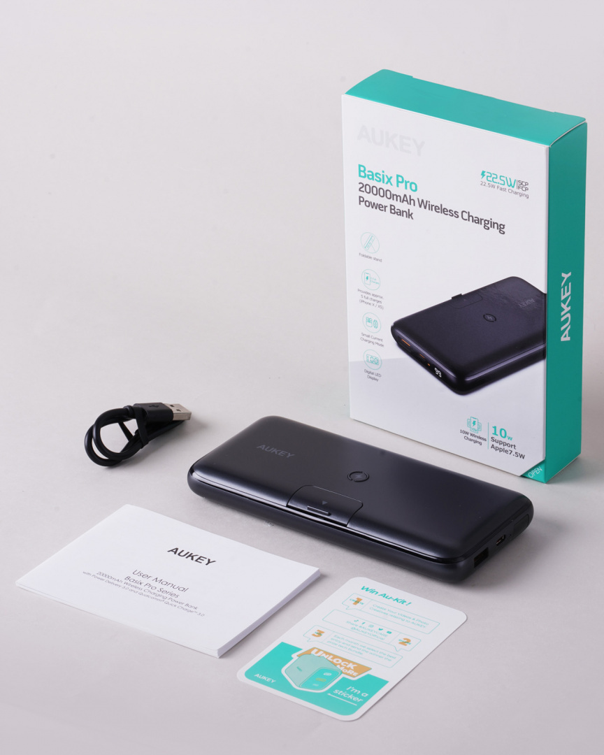 Wraz z powerbankiem Aukey PB-WL03S w zestawie otrzymasz kabel USB-A do USB-C, instrukcję obsługi oraz 24-miesięczną gwarancję.