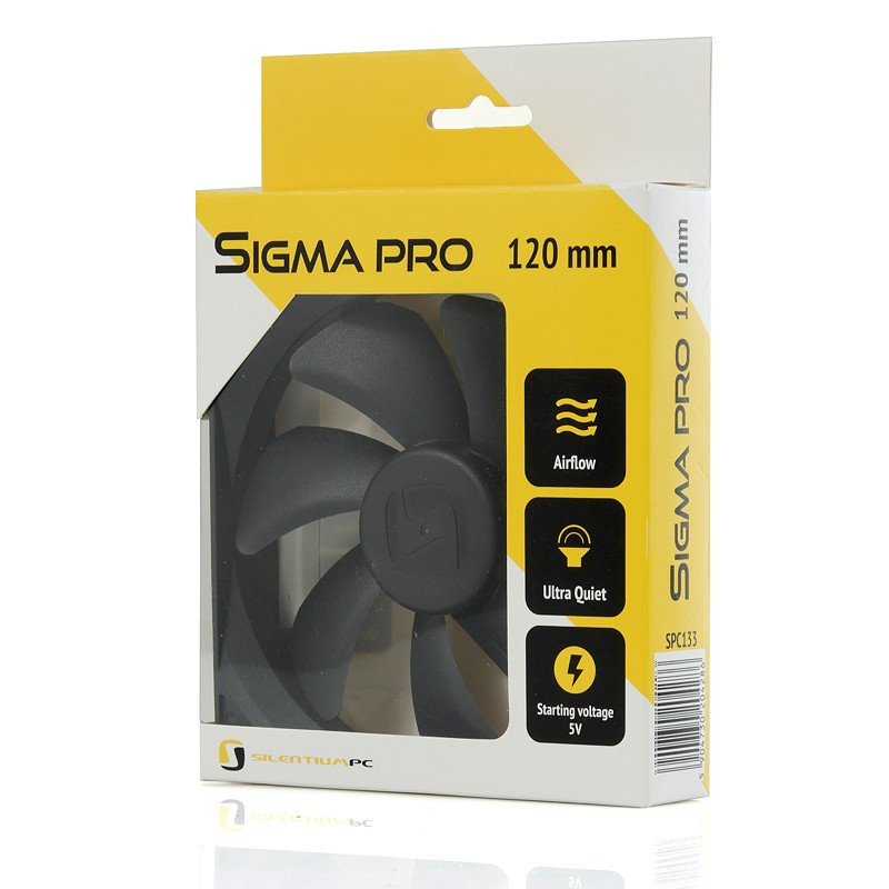 Sigma Pro 120 PWM to wentylator ze standardową obudową, kompatybilny ze wszystkimi produktami projektowanymi pod wentylatory 120mm takimi jak obudowa, czy też cooler CPU. W stosunku do tradycyjnych konstrukcji gwarantuje on cichszą pracę przy tych samych obrotach, lub większą wydajność przy wyższych obrotach.