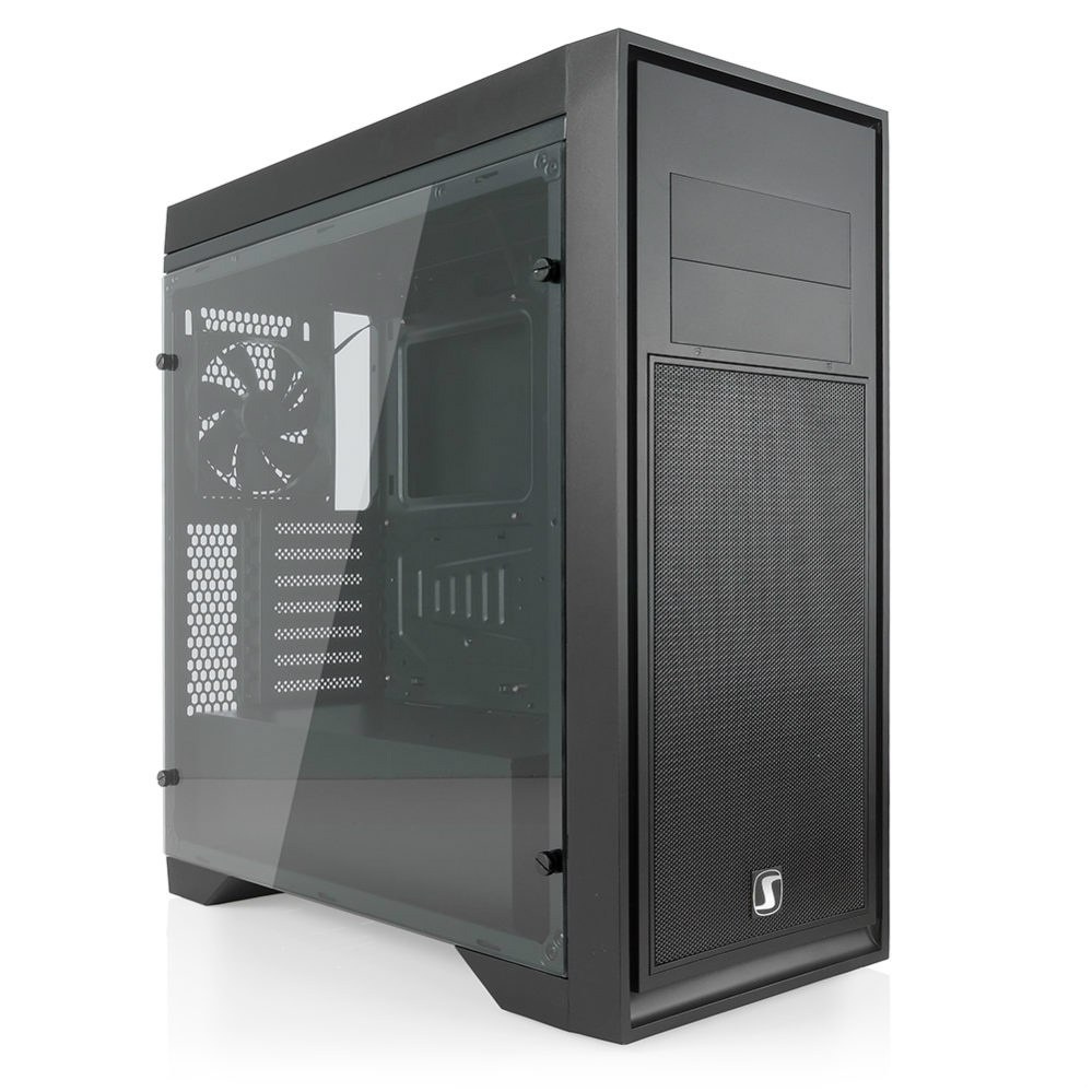 Obudowa SilentiumPC Aquarius X70T Pure Black to ukłon w stronę użytkowników, którzy lubią mieć dobry widok na wnętrze swojego komputera bez konieczności otwierania go np. w przypadku korzystania z chłodzenia cieczą lub ciekawych wizualnie komponentów PC. Wszystko za sprawą panelu bocznego obudowy wykonanego w całości z hartowanego szkła o wymiarach 430 mm szerokości i 427 mm wysokości. Panel ten mocowany jest do obudowy czterema, stosunkowo małymi śrubami dzięki czemu cały jeden bok obudowy wydaje się być otwarty.