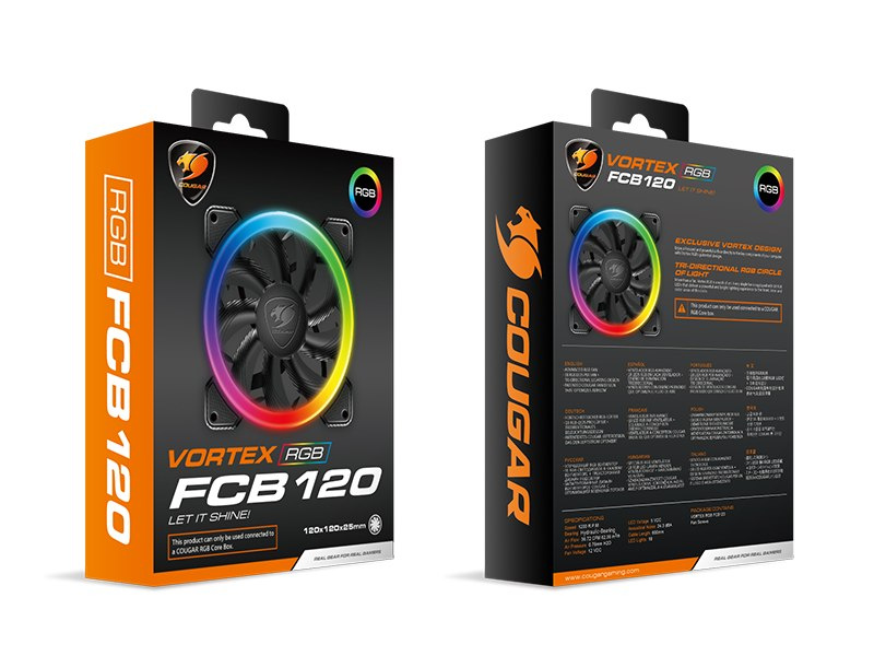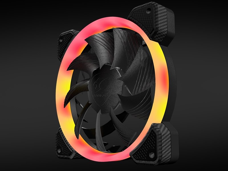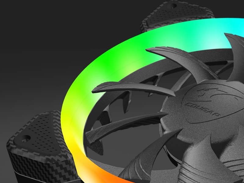 Cougar Vortex RGB FCB 120 to coś więcej, niż tylko wentylator. Jego pierścieniowe podświetlenie z 18 diodami LED RGB zapewni dodatkowy aspekt wizualny wnętrzu twojego komputera.