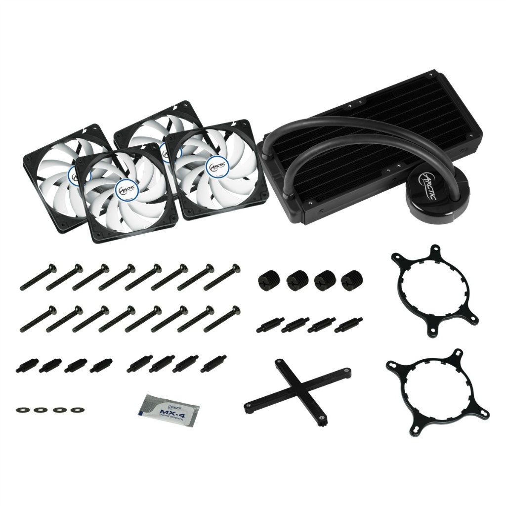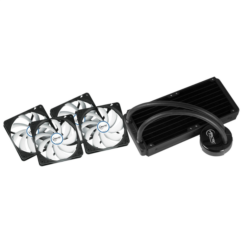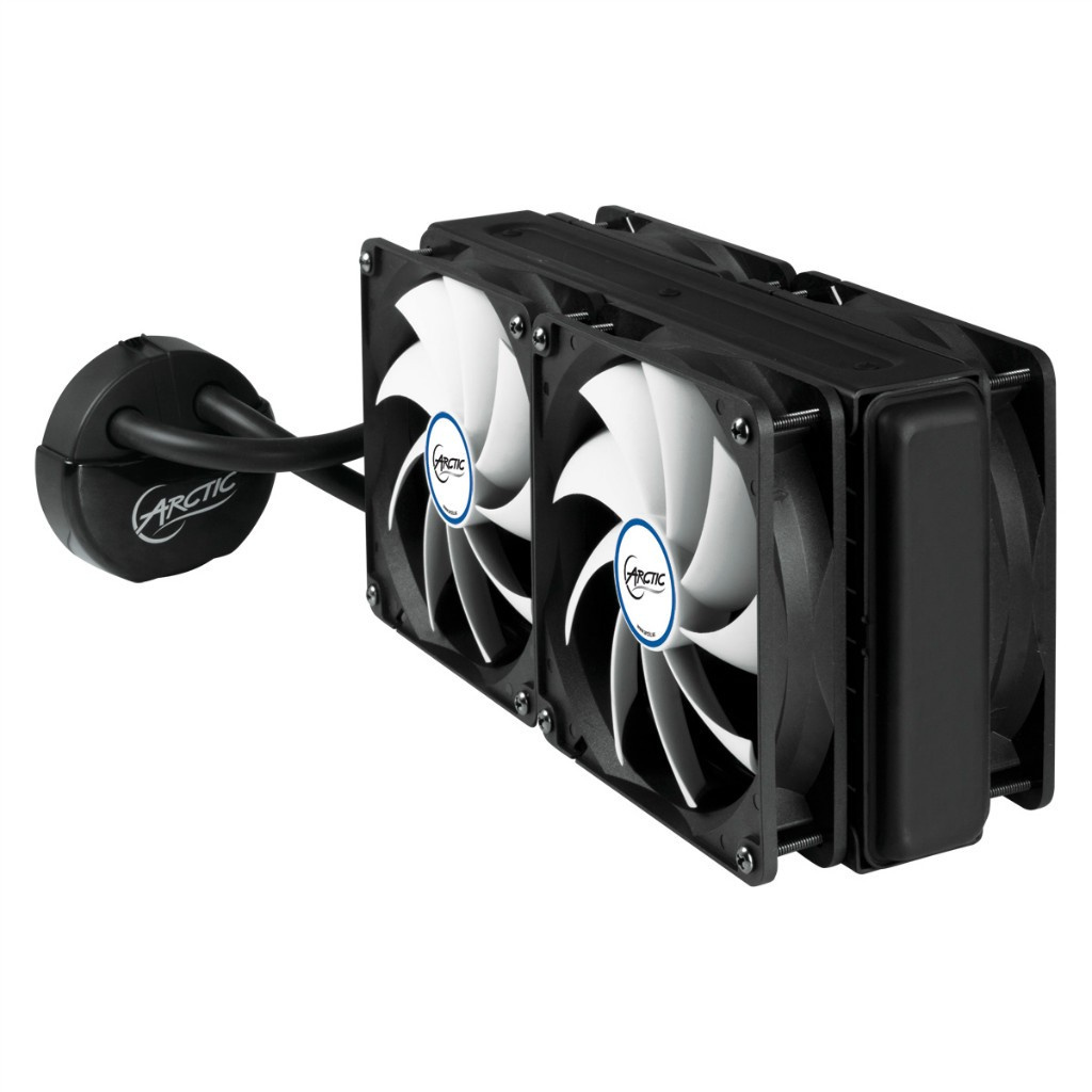 Cztery wentylatory 120mm o niskim poziomie hałasu i dużym zakresie obrotów zostały zamontowane po obu stronach Arctic Liquid Freezer 240. Zapewniają one w tej sposób najlepszy sposób rozpraszania ciepła z nagrzewnicy znany jako Push-Pull. Pierwsze dwa wentylatory tłoczą powietrze do wnętrza natomiast dwa pozostałe wyciągają je po drugiej stronie. Dzięki technologii PST wentylatory można kontrolować jednocześnie z poziomy płyty głównej na podstawie odczytu temperatury procesora.
