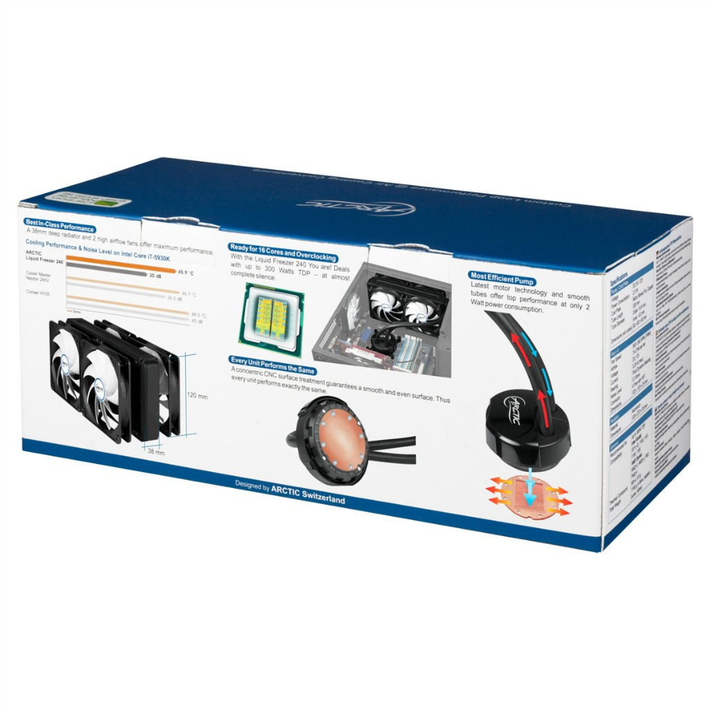 Dzięki wykorzystaniu czterech doskonałych wentylatorów F12 PWM PST, wydajnej pompy, oraz grubej na 38mm nagrzewnicy, chłodzenie wodne Arctic Liquid Freezer 240 zapewnia niespotykaną wydajność chłodzenia przy niskim poziomie hałasu.