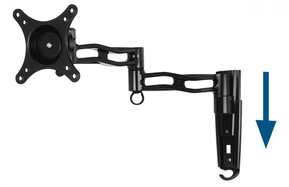 Konstrukcja przegubu daje elastyczność przy optymalnym ustawieniu monitora w celu zmniejszenia zmęczenia oczu, szyi, ramion i pleców. Bezpośredni montaż do ściany pozwala zmaksymalizować obszar roboczy. Kompatybilny z monitorami od 13" do 30", bezpośredni dwuczęściowy system montażu pozwala na szybkie montaż i demontaż. Jest przystosowany do monitorów o wadze do 20kg. Widoczny na zdjęciach monitor nie znajduje się w komplecie!