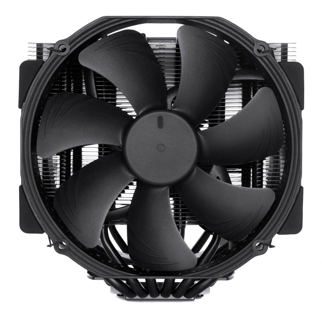 Konstrukcja wykonanej z miedzi i aluminium chłodnicy w zestawie Noctua NH-D15 chromax.black opiera się na dwóch wieżach oraz na wentylatorach Noctua NF-A15 HS-PWM chromax.black. Zapewnia ona bardzo niewielki poziom hałasu oraz rewelacyjną wydajność. Podwójna rura grzewcza wyposażona została tu w sześć rurek cieplnych, dzięki czemu ciepło jest rozprowadzane efektywniej. Producent poszerzył przy tym listki chłodnicy do 150 mm (10 mm więcej niż w modelu NH-D14), zwiększając jednocześnie odległość między rurkami cieplnymi i uzyskując tym samym większą powierzchnię, po której ciepło jest rozprowadzane. Ponadto żeberka zostały tu przylutowane do rurek cieplnych, nie zaś (jak w przypadku wielu innych modeli chłodnic) wciśnięte do nich, co wpłynęło na dłuższą żywotność prezentowanego sprzętu. Warto również dodać, że choć w trybie podwójnego wentylatora zestaw pracować powinien z pamięcią RAM do 32 mm, to już w trybie wentylatora pojedynczego będzie kompatybilny z większością tego typu pamięci, praktycznie bez ograniczeń.