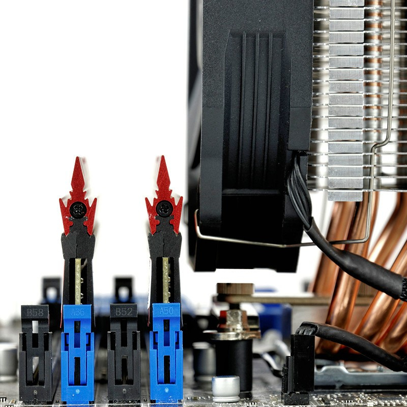 - asymetryczny radiator pozwalający na montaż wysokich modułów pamięci RAM