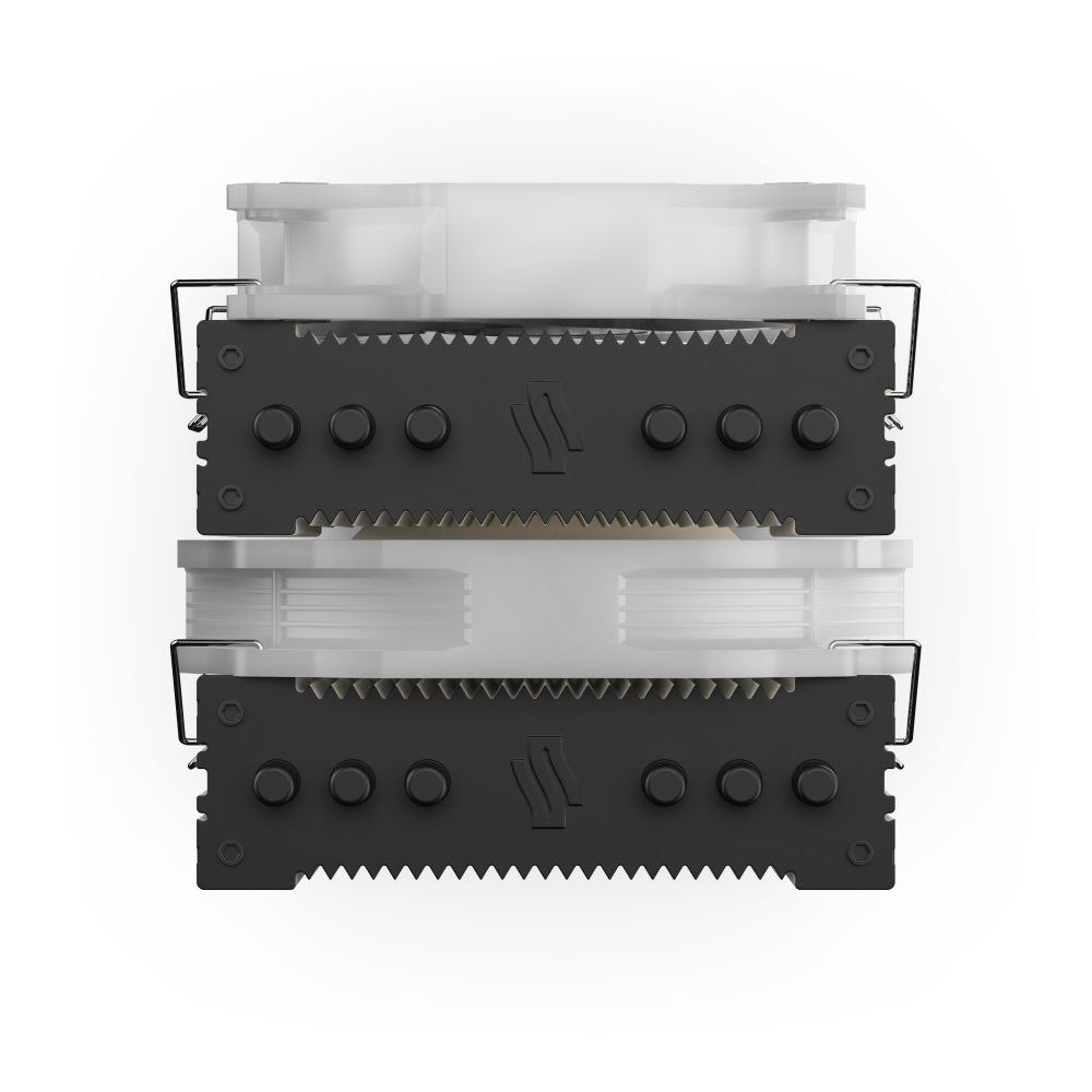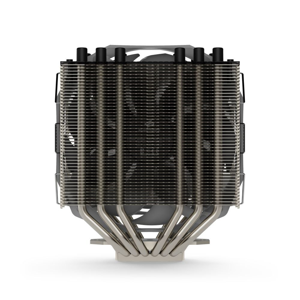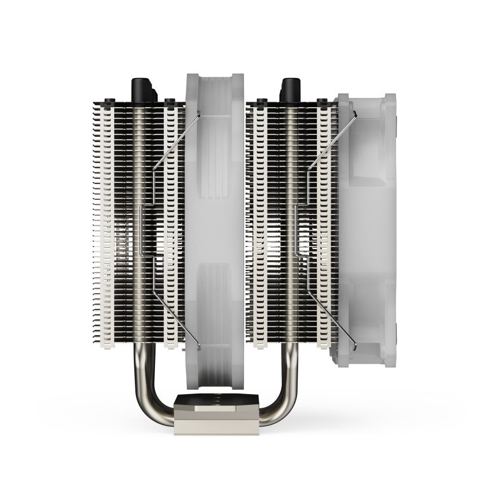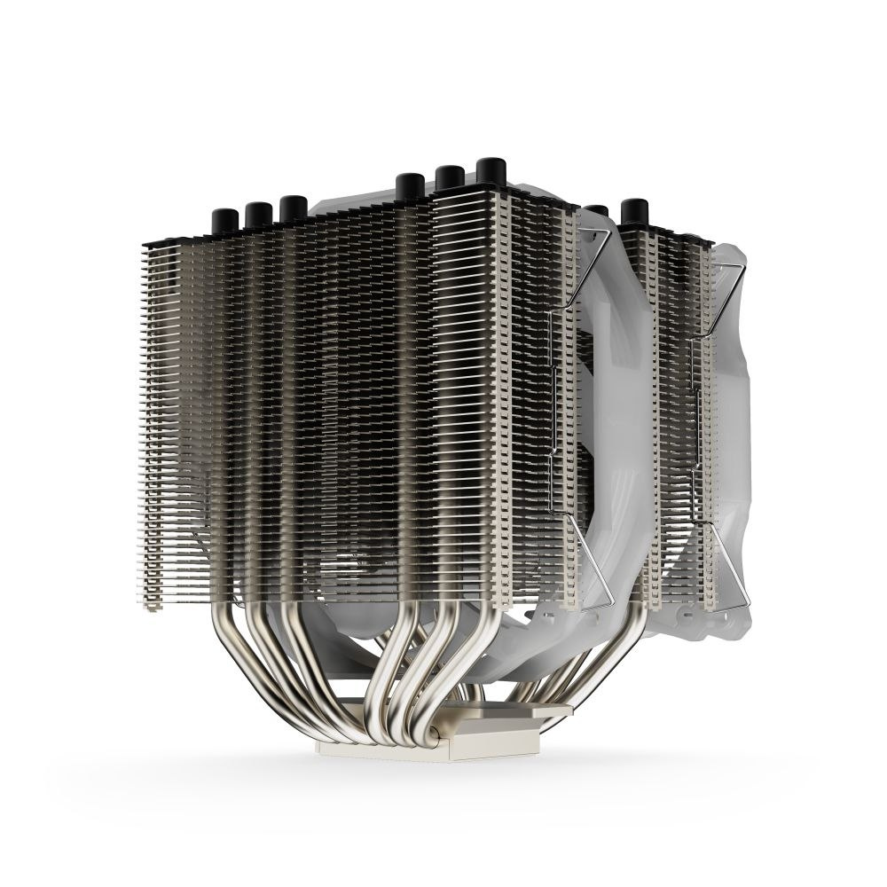 Radiator w SilentiumPC Grandis 3 wyposażony został w miedziany blok z 6 rurkami cieplnymi, które przekazują ciepło do aluminiowych finów. Co więcej, blok oraz rurki są niklowane. Dzięki specjalnej konstrukcji i ułożeniu blaszek powietrze jest z łatwością wydmuchiwane przez dwa wentylatory.