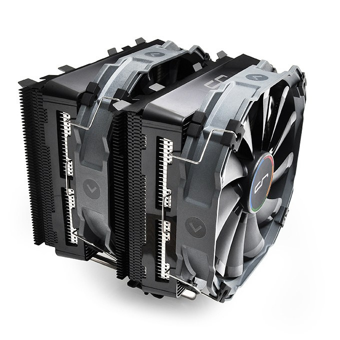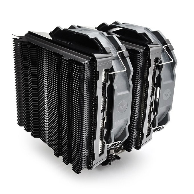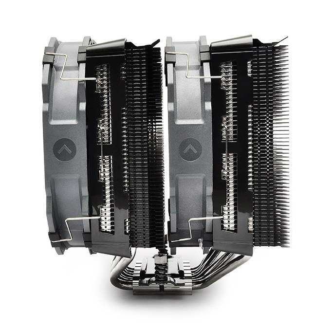 Przyspieszony wylot powietrza bo im szybciej tym chłodniejKażda z wieży radiatora podzielona jest na dwie sekcje - luźny układ wlotu powietrza i wysokiej gęstości układ wylotu. Zgodnie z prawem dynamiki płynów wzrost liczby żeber w sekcji wylotu ściska przepływ powietrza i zwiększa jego prędkość. Zwiększenie prędkości przepływu powietrza w naszym systemie (Jet Fin Acceleration System) pozwala ogrzanemu powietrzu na szybsze opuszczenie wieży i wydajniejsze chłodzenie procesora.