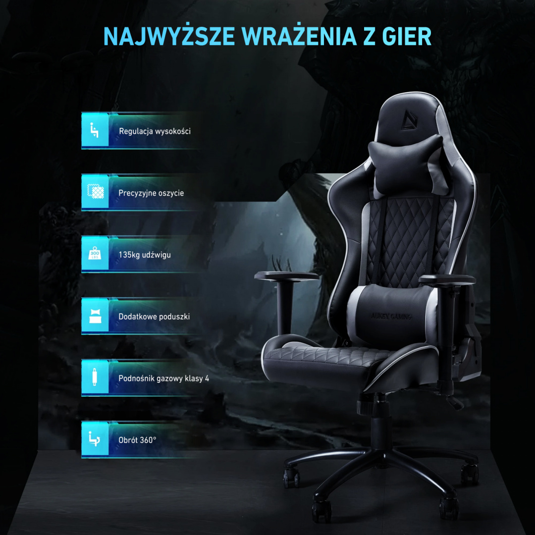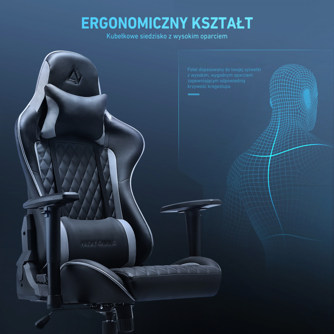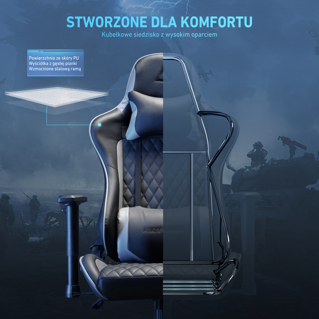 Odchylenie w zakresie od 90 do aż 155°, idealnie przylegające do ciała siedzisko i wysokie oparcie, wzmocniona stalowa rama, wyściółka z gęstej pianki, regulowane podłokietniki i dwie poduszki dla jeszcze większego komfortu – to tylko wybrane zalety prezentowanego modelu fotela gamingowego marki Aukey. Fotela, którego przemyślany design również nie pozwala pozostać obojętnym, jako że mamy tu do czynienia z elegancką, ergonomiczną konstrukcją (i maksymalną wagą użytkownika do aż 135 kg), wysokiej jakości materiałami, a także z przyjazną, stonowaną kolorystyką. Czytaj dalej i dowiedz się, dlaczego jeszcze warto postawić na ten właśnie model.
