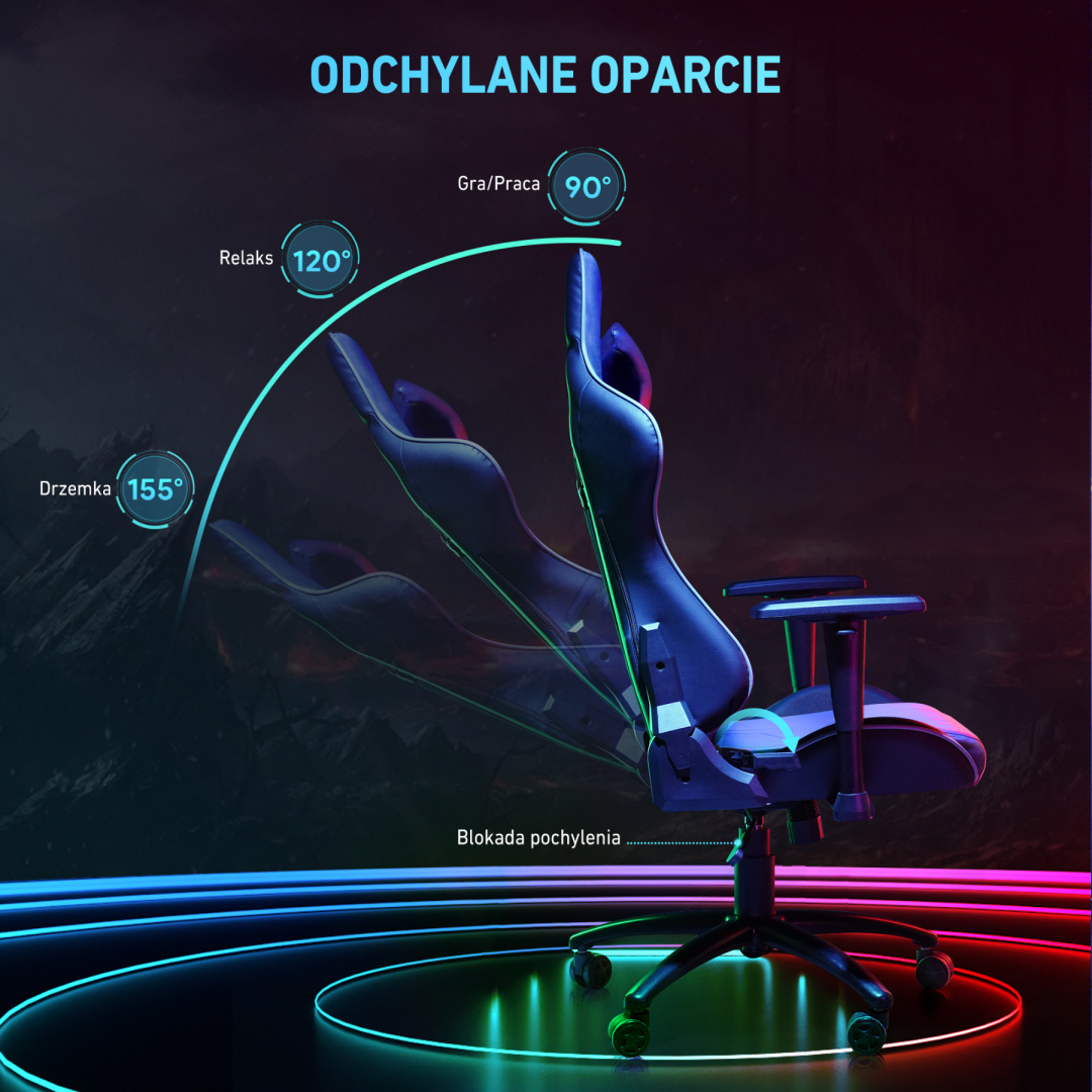 W szaro-czarnym fotelu gamingowym Aukey GC-A02 możesz oczywiście zablokować oparcie w pozycji pionowej, ale masz też możliwość jego odchylenia (i również zablokowania w dogodnej pozycji). A ponieważ odchylenie maksymalne dla tego modelu to aż 155 stopni, bez problemu się na nim zdrzemniesz. Grać w ulubione gry możesz z kolei przy odchyleniu na poziomie np. 120 stopni, co z jednej strony sprzyjać będzie zrelaksowaniu, z drugiej zaś koncentracji (a wiadomo, że połączenie tych dwóch stanów czyni mistrza). Wysokość siedziska regulować możesz w zakresie 10 cm. Podłokietniki 2D również mogą być różnej wysokości (zakres regulacji wynosi tutaj aż 7 cm), a dodatkowo możesz zmodyfikować stopień ich odchylenia w poziomie (do 15°). Pełna personalizacja? Inaczej nazwać tego chyba nie można...