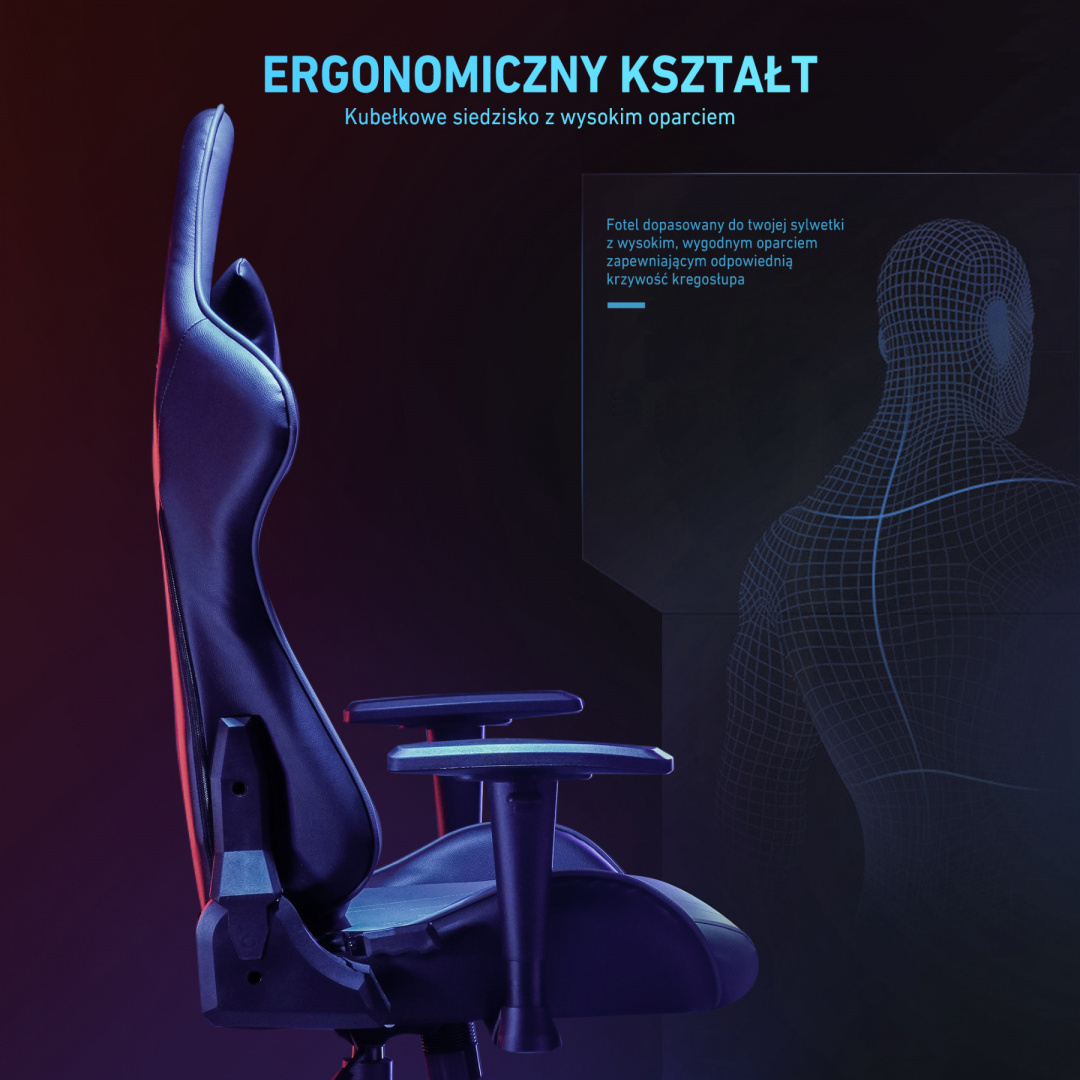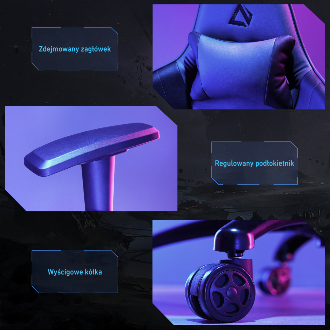 • Materiał: skóra PU, ABS, metal, gęsta pianka