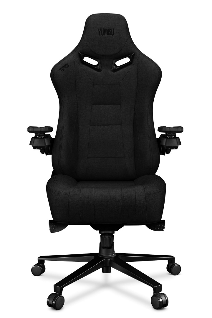 Czarny fotel gamingowy Yumisu 2049 - ergonomiczna konstrukcja i tkaninowe obicie