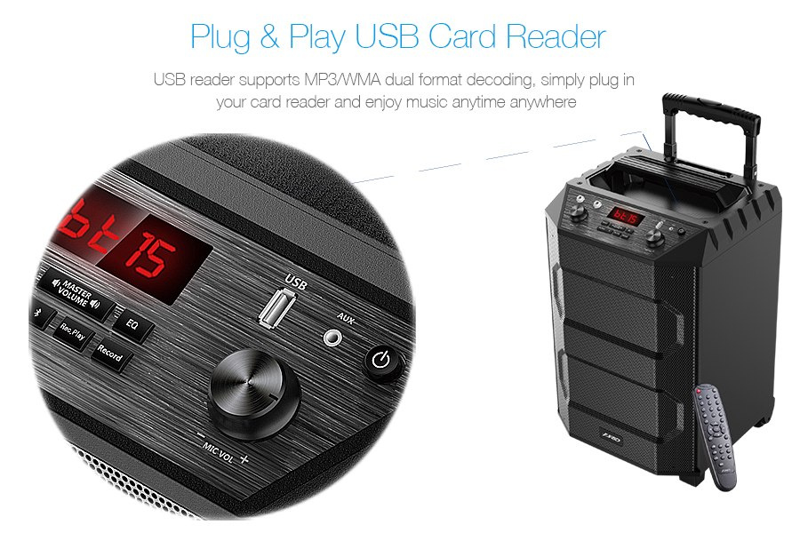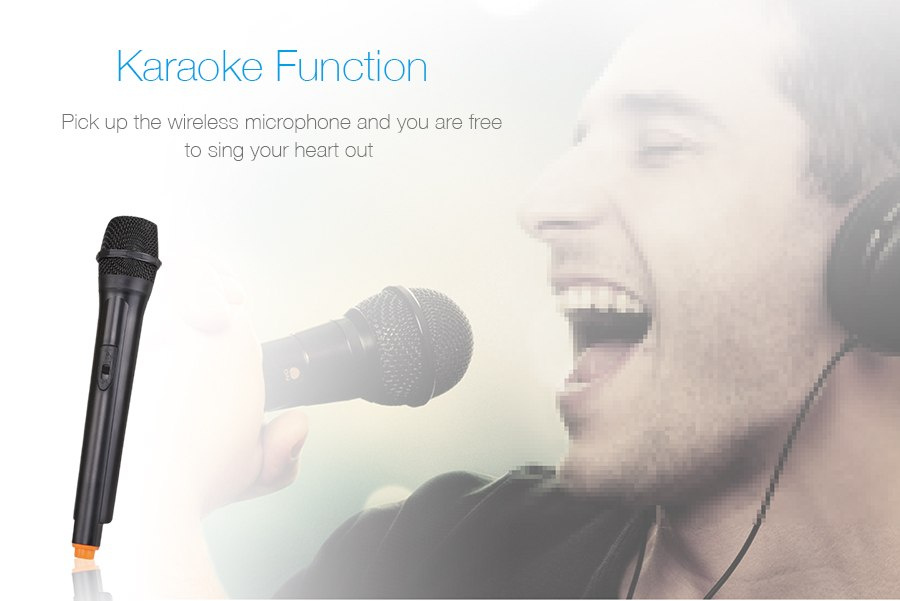 Ty lub ktoś z Twoich znajomych gra na gitarze? To świetnie, bo Fenda T5 posiada dodatkowe wejście na ten instrument! A nie ma chyba lepszego sposobu, by rozkręcić imprezę, niż dobra muzyka na żywo. No może jest - niektórzy wolą karaoke. Ha! Tu kolejna niespodzianka - w zestawie znalazł się bezprzewodowy mikrofon, dzięki któremu możecie śpiewać bez końca, mając przy tym mnóstwo zabawy (w przypadku niektórych “wokalistów” śmiechom na sali faktycznie nie ma końca).