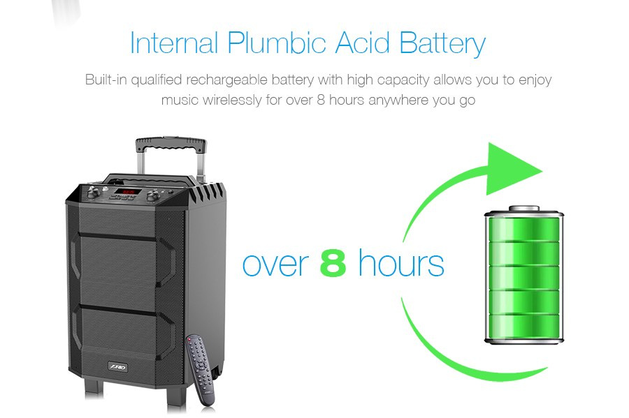 8 godzin - aż tyle czasu Fenda T5 odtwarzać może muzykę po jednokrotnym naładowaniu. To z pewnością wystarczająco, by zabawa nie skończyła się zbyt wcześnie. A gdy się skończy, kolumnę bez problemu przetransportujesz - ma ona nie tylko składany uchwyt, ale i zamontowane fabrycznie kółka.