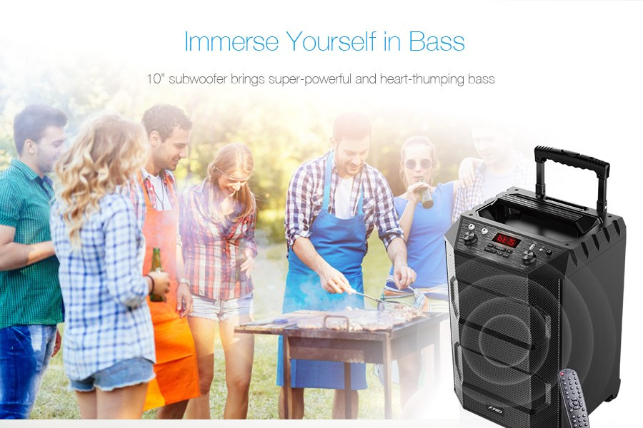 Kolumna Fenda T5 może pochwalić się mocą 33 W. To wystarczy, by porządnie wypełnić dźwiękiem małe i średniej wielkości pomieszczenie oraz ponieść go na większą odległość w warunkach plenerowych. Warto też dodać, że głośnik wyposażony został również w subwoofer 10’’ i dwa głośniki średniotonowe 3’’ - takie połączenie sprawia, że brzmienie, jakie z niego uzyskasz, będzie charakteryzowało się nie tylko czystością, ale i odpowiednią “siłą rażenia” (jak zapewne doskonale wiesz, tylko dobry subwoofer jest w stanie zagwarantować przysłowiowe odczuwanie muzyki w całym ciele).