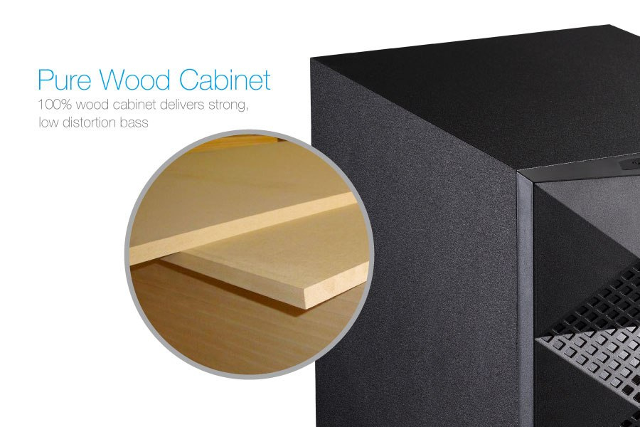 Fenda A180X 2.1. to głośniki o mocy 42W RMS. W zestawie znalazły się trzycalowe głośniki pełnozakresowe oraz głośnik niskotonowy 5,25’’. Ten ostatni posiada wbudowane podświetlenie LED. Obudowa wykonana została z odpornego MDF i pokryta jest okleiną w kolorze klasycznej czerni.