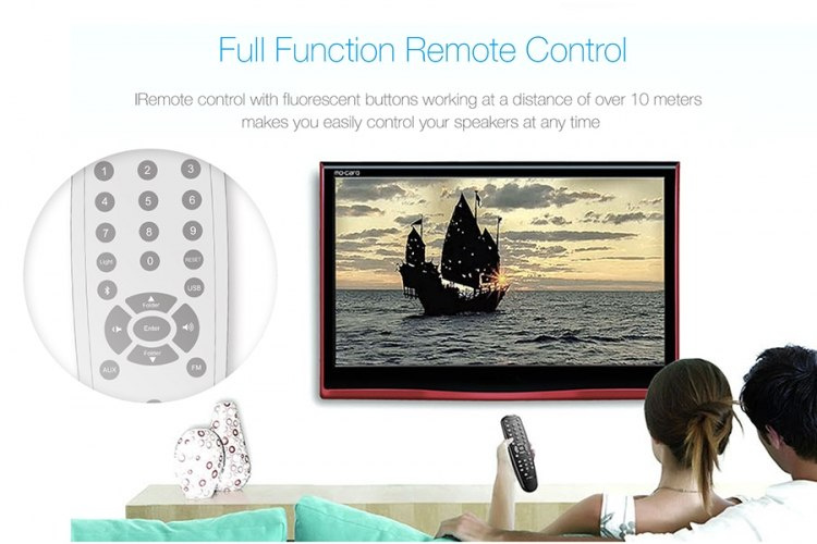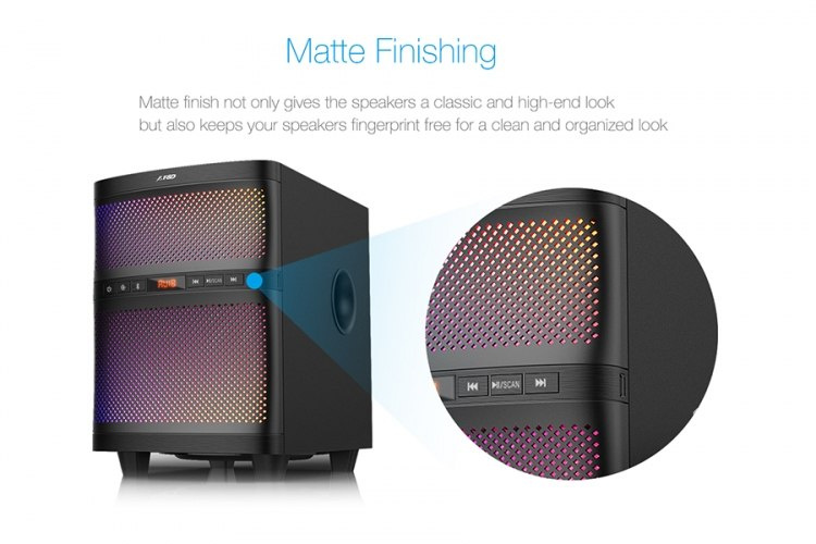 Z kanapy oczywiście. Albo z fotela czy krzesła. Do zestawu dołączony został bezprzewodowy pilot, który umożliwi Ci sterowanie głośnikami Fenda F5060X 5.1 na odległość. Jeśli jednak znajdujesz się akurat blisko nich, to na subwooferze znajdziesz panel kontrolny z wyświetlaczem. Obsłużysz dzięki niemu głośniki, ale też dowiesz się o aktualnych ustawieniach (m.in. głośność, wybrana stacja radiowa itp.).