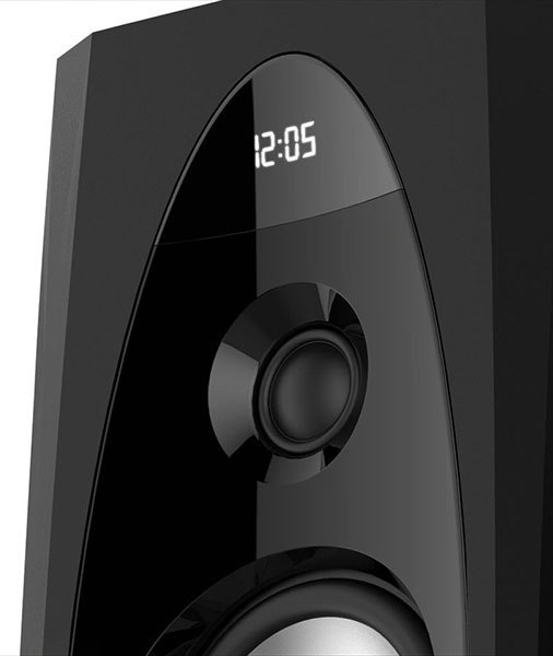 Jedna z kolumn Fenda T-60X wyposażona została w użyteczny wyświetlacz LED. Odczytasz na nim informacje dotyczące źródła dźwięku, aktualnie wybranego poziomu głośności, a także stacji radiowej. Bo radia również można z kolumn słuchać - tuner FM umożliwia zapamiętanie nawet 100 stacji.