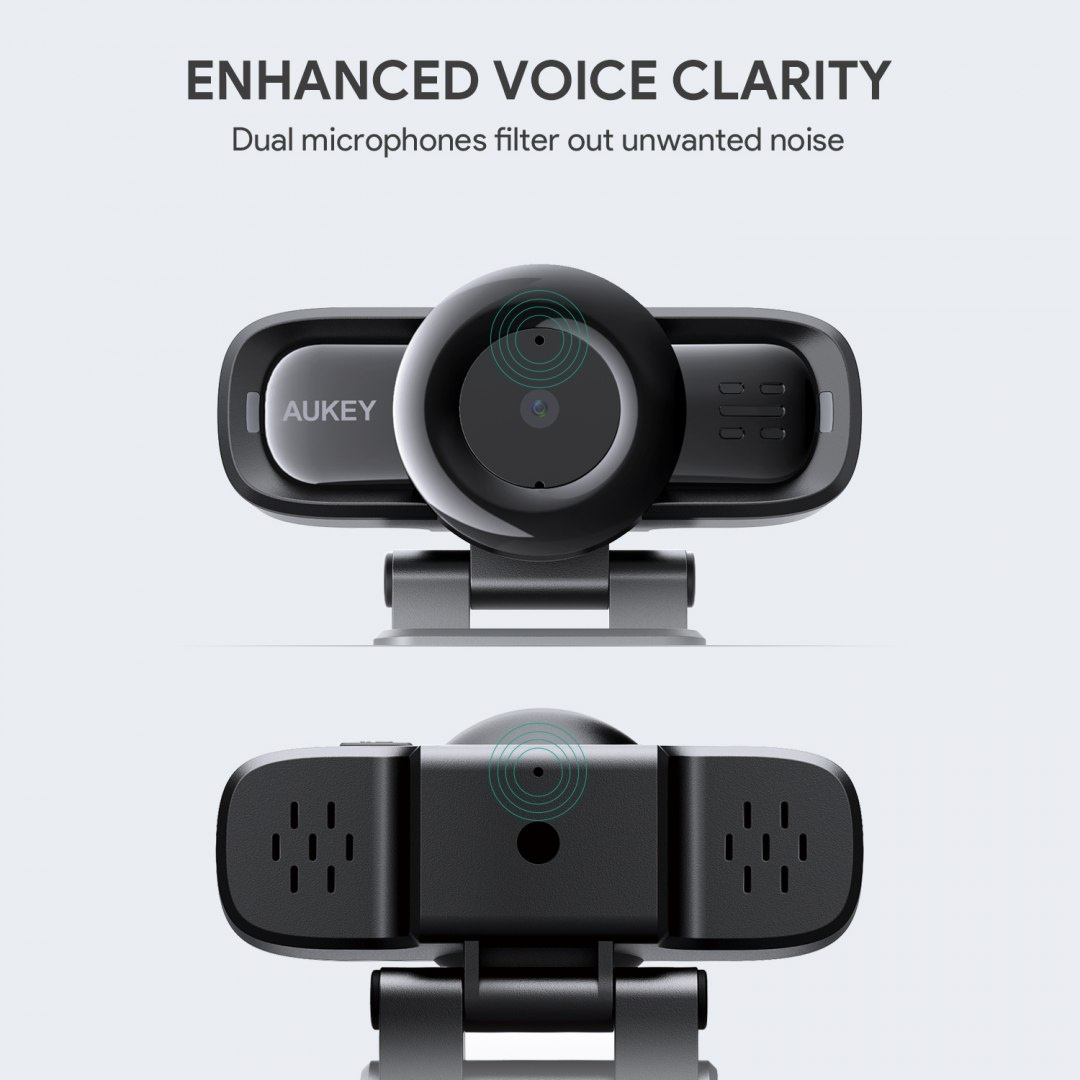 Z dźwiękiem jest w tym modelu podobnie jak z ostrością. Kamera internetowa Aukey PC-LM3 wyposażona została w dwa mikrofony stereo z redukcją szumów. Kiedy więc Ty beztrosko sobie rozmawiasz, one pracują nad tym, by odpowiednio odfiltrowywać wszystkie niechciane dźwięki czy hałasy. W końcu to Ciebie ma być słychać, a nie wiertarkę sąsiada, miauczenie kota czy niesforne dzieciaki za oknem…