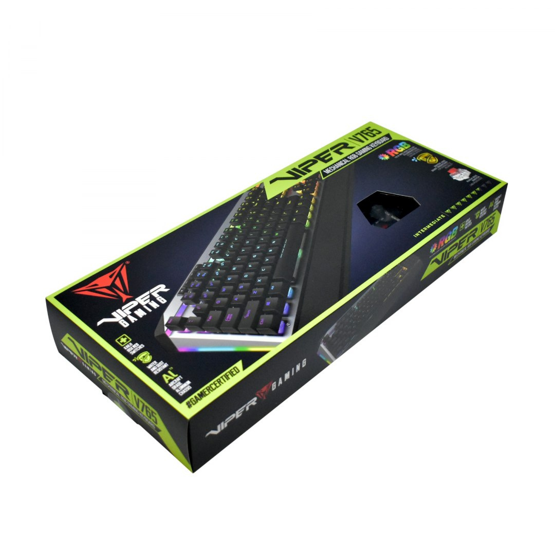Patriot Viper V765 to propozycja, która powstała przy współpracy inżynierów oraz e-sportowców z Viper Gaming Team. V765 to model mechaniczny, wyposażony w przełączniki Kailh Red Box. Klawiatura posiada także normę IP56, gwarantującą odporność na zachlapania i pył. Całości dopełnia podświetlenie RGB