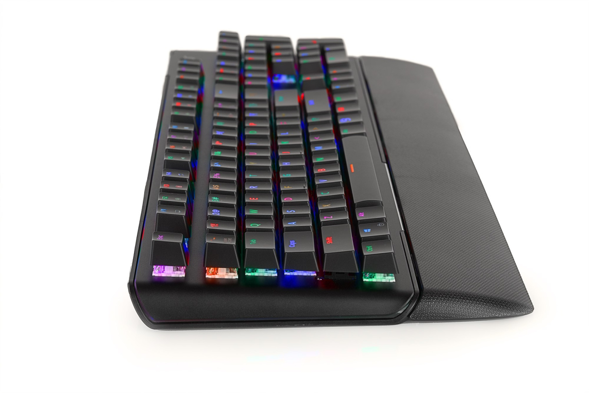 SPC Gear GK550 Omnis to mechaniczna klawiatura, wyposażona w 104 przyciski. Dzięki odpinanej magnetycznie podpórce, pełnoprawnym punktowym podświetleniu RGB, pełną gamą przełączników i programowalnym makrom jest to najlepsza propozycja dla wszystkich graczy, którym zależy na jak najlepszym stosunku ceny do jakości.