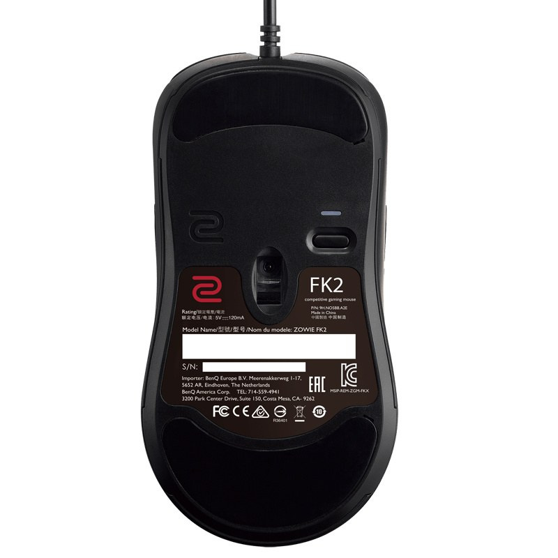 Zowie BenQ FK2 została zaprojektowana z myślą o graczach oburęcznych, korzystających z chwytu typu Claw lub Palm. Kształt obudowy jak i antypoślizgowa powłoka o podwyższonej odporności na ścieranie, którą została pokryta ma ogromny wpływ zarówno na komfort jak i pewność chwytu, a to z kolei przekłada się również na dokładniejsze ruchy. Zastosowany sensor to najpopularniejszy czujnik od PixArt (dawniej Avago) PMW3310 o maksymalnej rozdzielczości 3200DPI. Charakteryzuje się on brakiem predykcji, interpolacji i jitteringu oraz wysokim poziomem szybkości maksymalnej i precyzją.