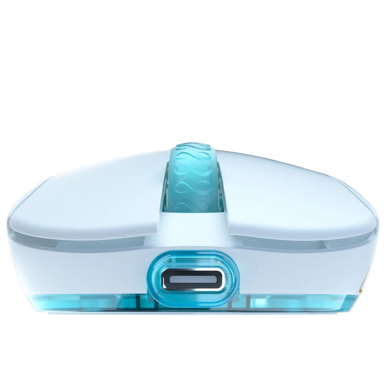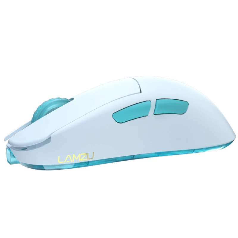 Mysz Lamzu Atlantis Wireless Polar White odznacza się przyjemnym dla oka śnieżnobiałym kolorem, który jest tu barwą dominującą. Lekko turkusowe są jedynie przyciski boczne, rolka oraz spód modelu, który jest dodatkowo przezroczysty. Uwagę zwraca również ergonomiczny kształt. To mysz, której używać mogą zarówno prawo-, jak i leworęczni użytkownicy - jedni i drudzy docenią kształt zapewniający świetne podparcie dla dłoni, i to bez względu na zastosowany chwyt. Warto również podkreślić, że przy wymiarach 12,3 × 6,6 × 3,8 mm model ten waży jedynie 55 gramów. Tak niska masa myszy gamingowej pozwoli na wielogodzinną grę bez odczuwania zmęczenia dłoni i nadgarstka.