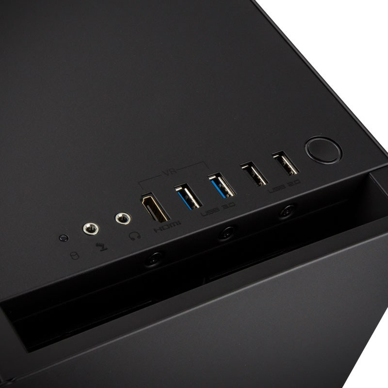 Obudowa posiada przycisk power, standardowe złącza audio, HDMI, dwa porty USB 3.0 oraz dwa porty USB 2.0.