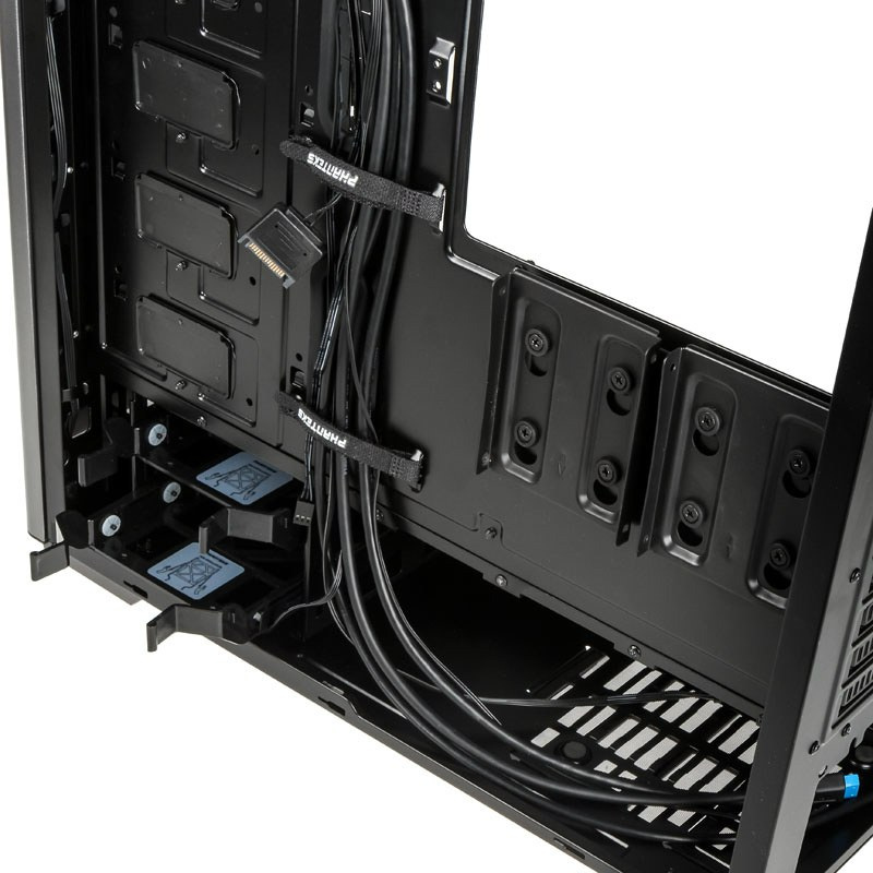 Cała konstrukcja ma wymiary 210x495x470 mm, a w jej wnętrzu znalazło się miejsce na płyte główną w formacie E-ATX (o szerokości do 272mm), ATX, micro ATX, lub Mini-ITX. Oprócz tego użytkownik może w niej zamontować kartę graficzną o maksymalnej długości 395 mm oraz układ chłodzenia o wysokości do 160 mm. Na karty rozszerzeń przewidziano 7 slotów. Cała konstrukcja została starannie wykonana ze stali i tworzyw sztucznych, ważąc 7 kg. Nie zabrakło również bocznego okna, wykonanego z hartowanego szkła.