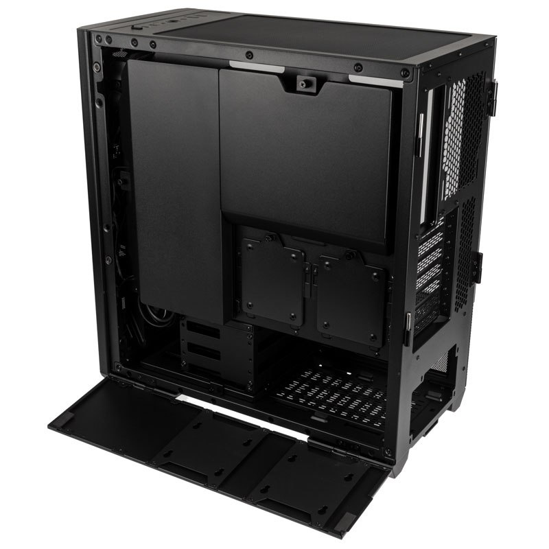 Obudowa Lian Li Lancool II Mesh RGB zachwyca swoim wyglądem zewnętrznym na wiele sposobów. W oczy nie tylko rzucają się podświetlane wentylatory, ale również drzwiczki ze szkła hartowanego na obydwu bokach obudowy. Poniżej ich producent umieścił specjalne klapy otwierane do dołu, które zapewniają łatwy dostęp do komory zasilacza.