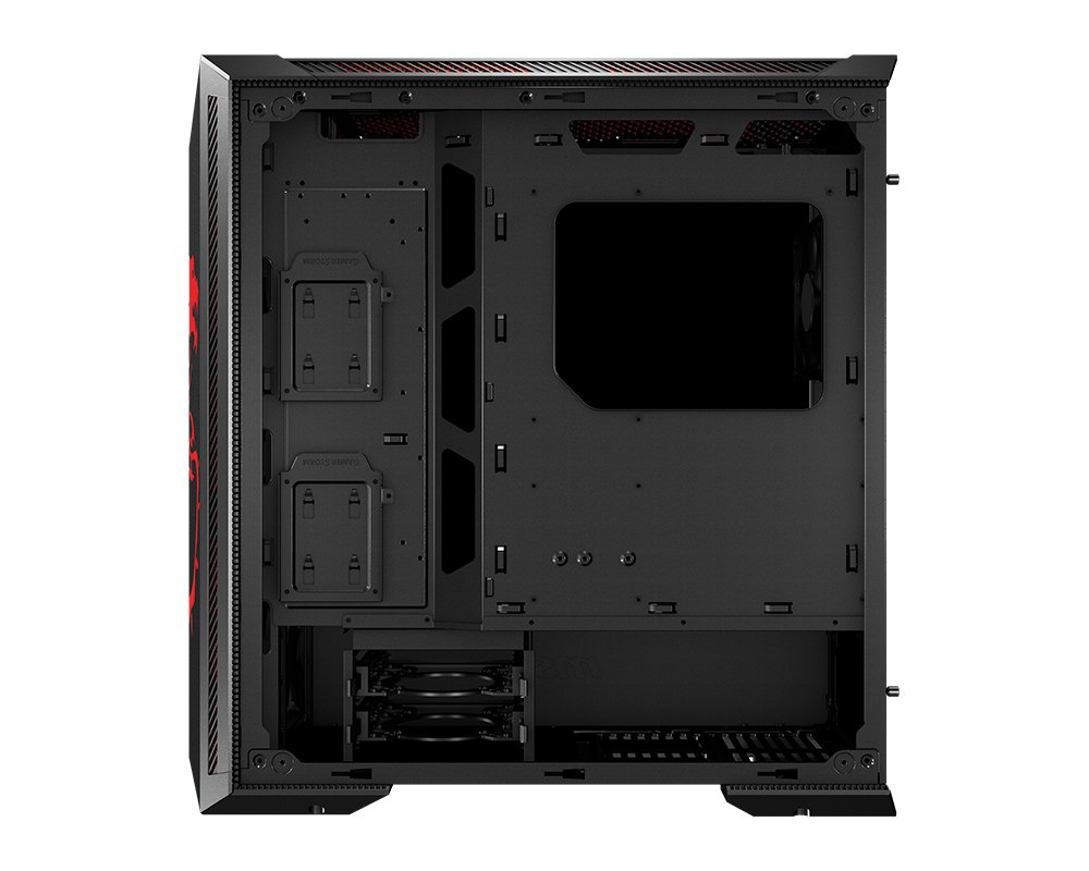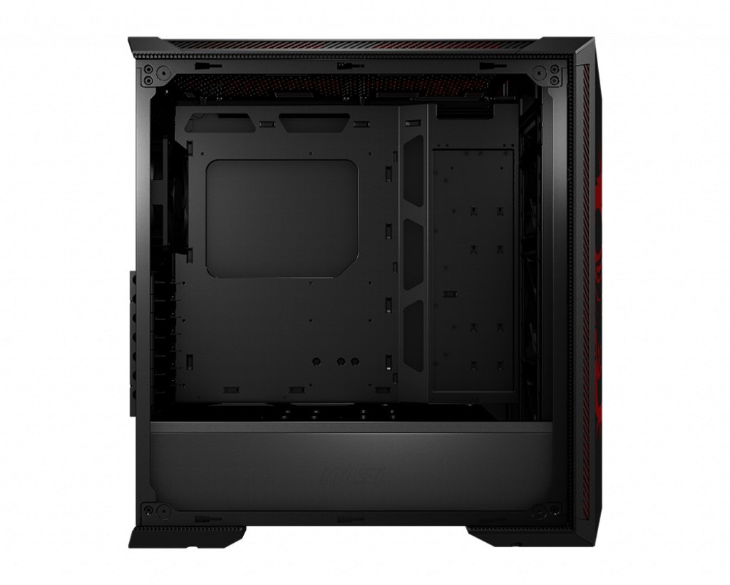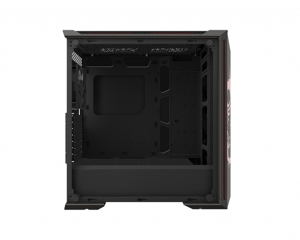 Czarny kolor wraz z czerwonymi detalami i unikalną grafiką smoka na froncie nadają obudowie MSI MPG Gungnir 100D niecodziennego wyglądu, który przykuwa wzrok. Boczny panel ze szkła hartowanego o grubości aż 4 mm pozwala na zaprezentowanie najważniejszych podzespołów, a dolna zasłonięta komora wraz z przepustami na kable pozwala na ich estetyczne ukrycie i tym samym zapewnienie jak najlepszej wentylacji.