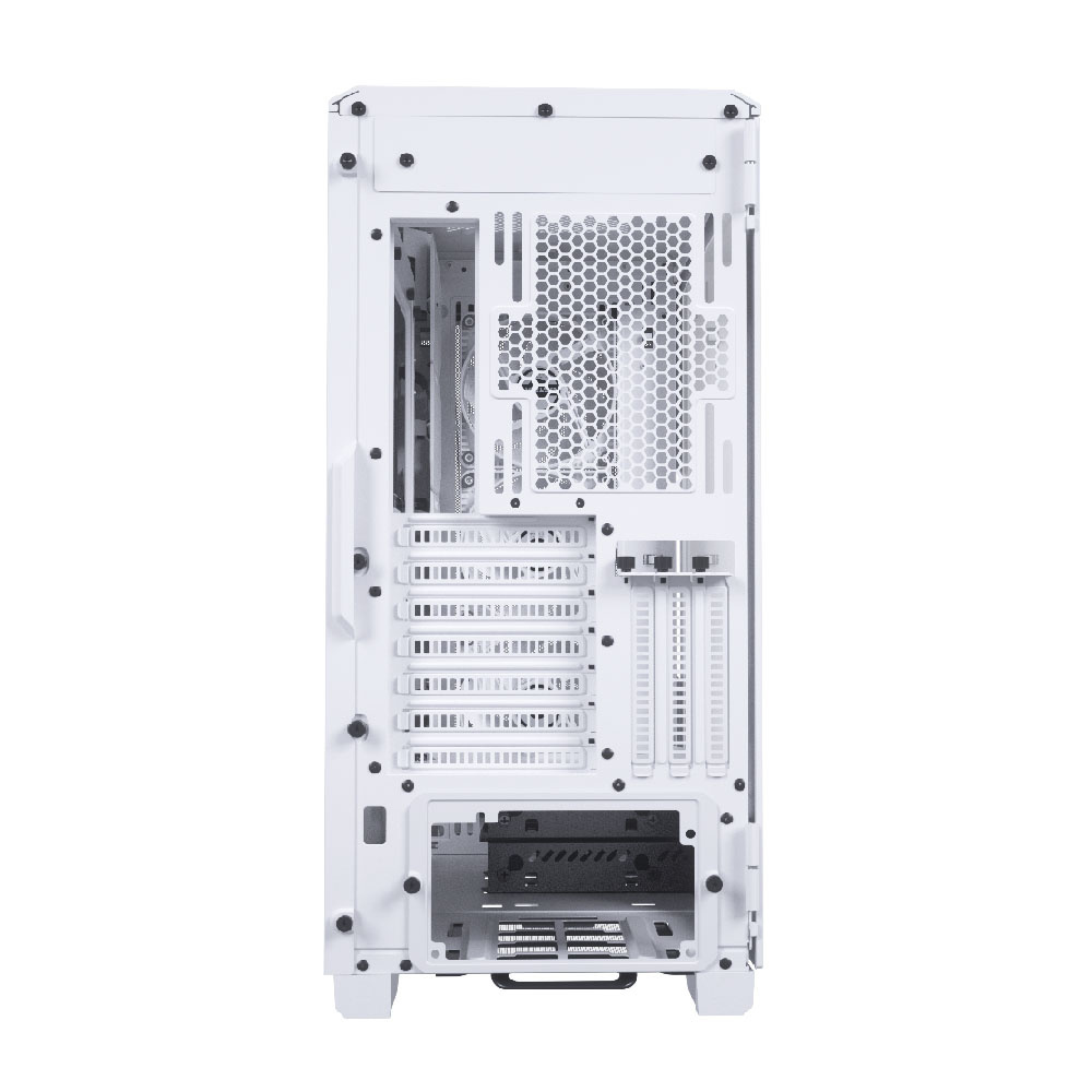 W białej matowej obudowie PHANTEKS Eclipse P500A Matte white producent umieścił trzy pionowe gniazda rozszerzeń na karty graficzne, a liczba miejsc na karty rozszerzeń wynosi siedem.