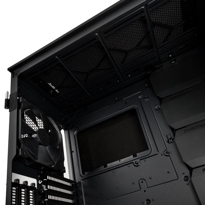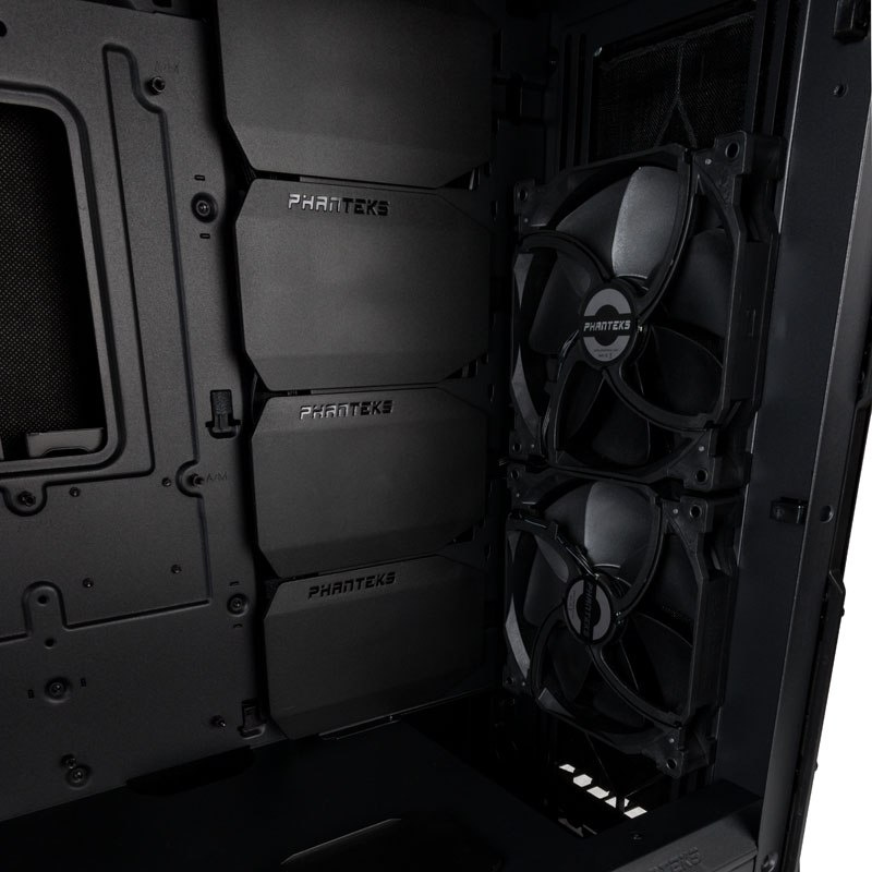 Producent wyposażył czarną obudowę Eclipse P600S w trzy wentylatory o średnicy 140 mm - dwa z nich zainstalowane są z przodu, jeden w części tylnej. Jeśli jednak chciałbyś system wentylacji rozbudować, w sumie zainstalować możesz aż siedem wentylatorów 120 mm lub sześć wentylatorów 140 mm. Oczywiście Phanteks daje Ci również możliwość wykorzystania chłodzenia wodnego (chłodzenie procesora do 190 mm oraz chłodnice do 420 mm). Rozwiązania te sprawiają, że nie będziesz musiał obawiać się przegrzania podzespołów, nawet wówczas, gdy Twój sprzęt pracował będzie na najwyższych obrotach.
