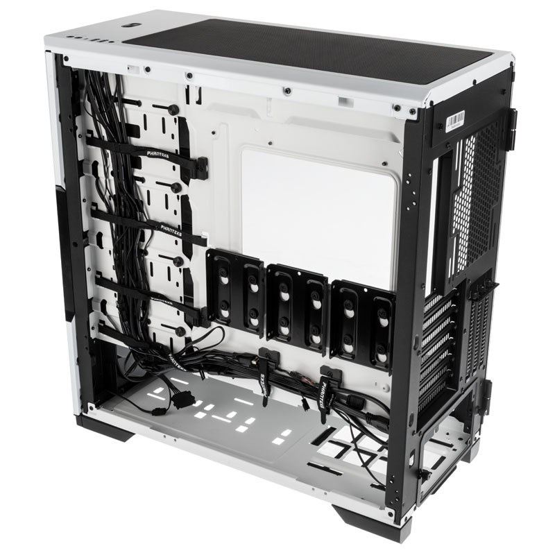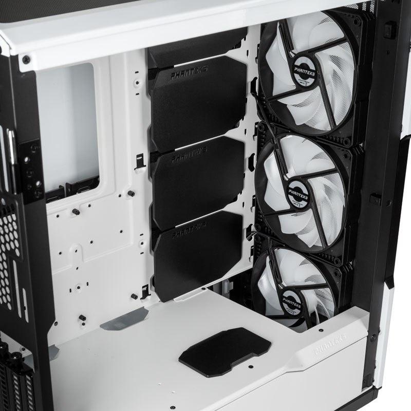 Wewnątrz Phanteks Eclipse P500A DRGB znalazło się miejsce dla płyt głównych w formacie od mini-ITX aż po E-ATX. Obudowa daje możliwość zamontowania kart graficznych o maksymalnej długości 435 mm, a także chłodzenia procesora o wysokości do 190 mm. Dzięki takim możliwościom P500A DRGB gwarantuje kompatybilność z większością dostępnych podzespołów na rynku.