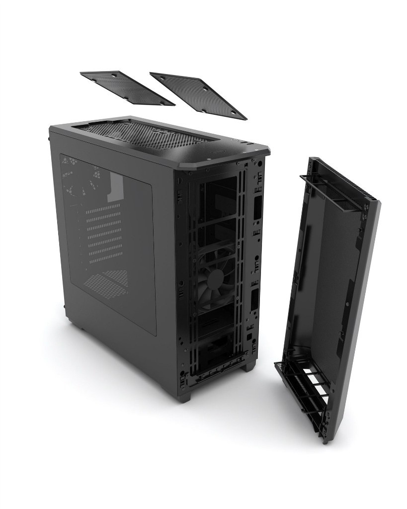 Cała konstrukcja ma wymiary 210x495x470 mm, a w jej wnętrzu znalazło się miejsce na płyte główną w formacie E-ATX (o szerokości do 272mm), ATX, micro ATX, lub Mini-ITX. Oprócz tego użytkownik może w niej zamontować kartę graficzną o maksymalnej długości 395 mm oraz układ chłodzenia o wysokości do 160 mm. Na karty rozszerzeń przewidziano 7 slotów. Cała konstrukcja została starannie wykonana ze stali i tworzyw sztucznych, ważąc 7 kg. Obudowa została wyposażona w maty wyciszające. Nie zabrakło również bocznego okna.