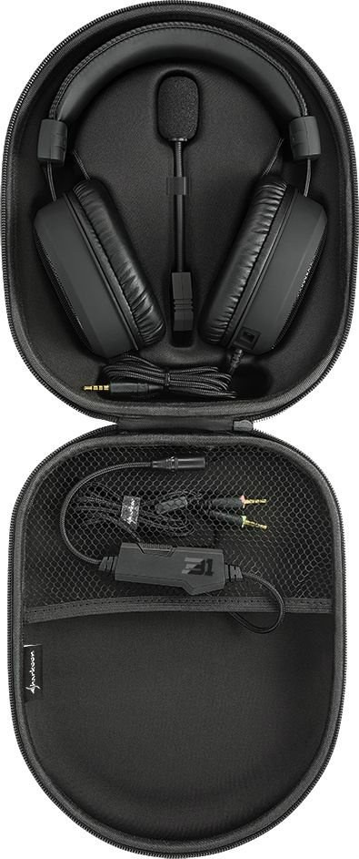 Tak, wspominamy tutaj o graczach, bo Sharkoon B1 to słuchawki z highendowym mikrofonem, który podobny i to sam osobno niektórzy producenci sprzedają za niemałą sumę. Mowa tutaj o mikrofonie jednokierunkowym i to z filtrem POP, który jest normalnie używany tylko w studiach nagraniowych. Trzymając na głowie niemieckie B1 mamy w tym momencie pewność, że tylko nasz głos będzie przesyłany dalej, a nie na przykład siostry która weszła do naszego pokoju i marudzi, że wyłączyłeś WiFi w chacie na czas ważnego meczu. Filtr POP natomiast eliminuje wyskakujące szumy, z którymi mamy do czynienia gdy w czasie mówienia czy śpiewania za dużo powietrza z naszych ust leci na mikrofon.