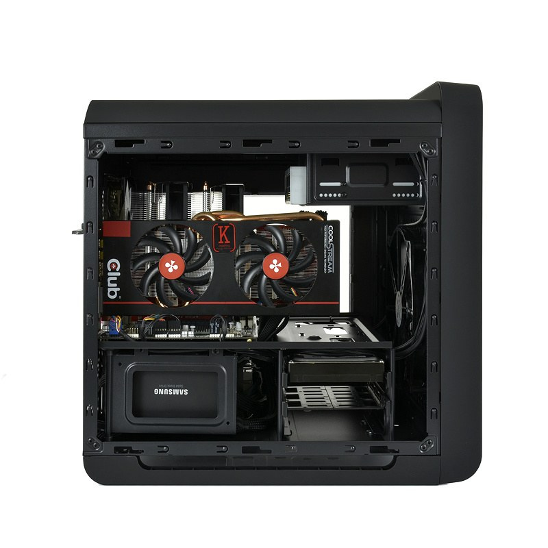 Alea M50 Pure Black to pierwsza konstrukcja SilentiumPC typu Gaming Cube, a jej nazwa dosłownie oznacza kostkę do grania. Zastosowanie tej formy pozwoliło na zmieszczenie pełnowymiarowych kart graficznych i dużego systemu chłodzenia na kompaktowej powierzchni. Jedynym ograniczeniem jest wielkość płyty głównej, która musi być w formacie mATX lub mniejszym.