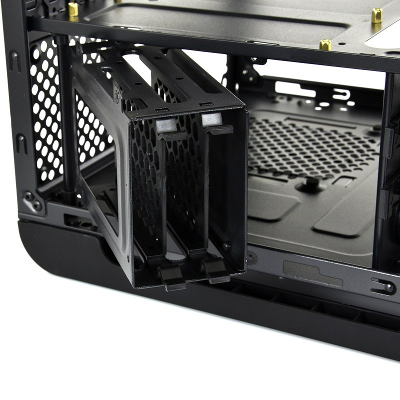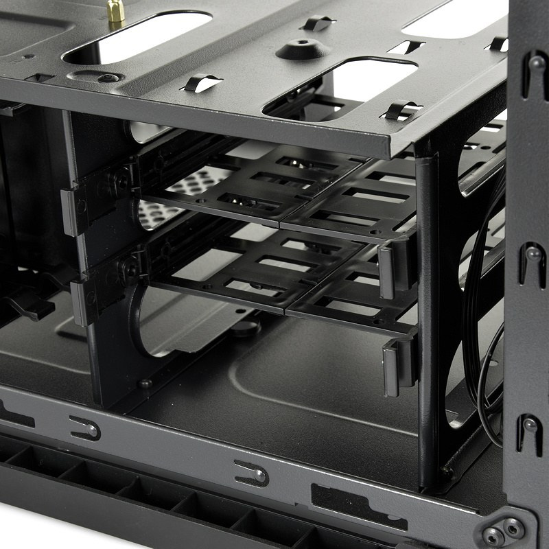 Ale M50 Pure Black zapewnia montaż do pięciu dysków twardych: maksymalnie cztery 2,5" i trzy 3,5" (dwa miejsca mogą pomieścić dyski 2,5 lub 3,5").