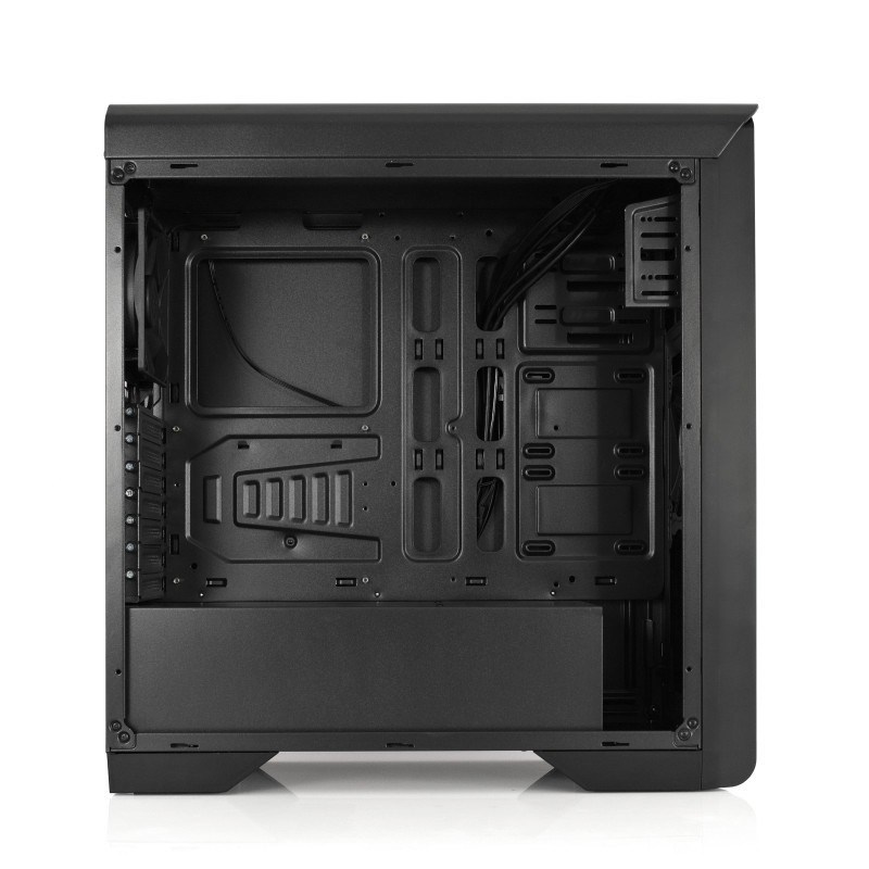 Na napędy zewnętrzne przeznaczono dwie zatoki 5,25″, natomiast na wewnętrzne aż trzy dedykowane napędom 2,5″ oraz dwie uniwersalne 2,5″ / 3,5″. Półotwarta, demontowalna konstrukcja zatok 5,25″ pozwala na montaż z przodu nawet potrójnej chłodnicy.