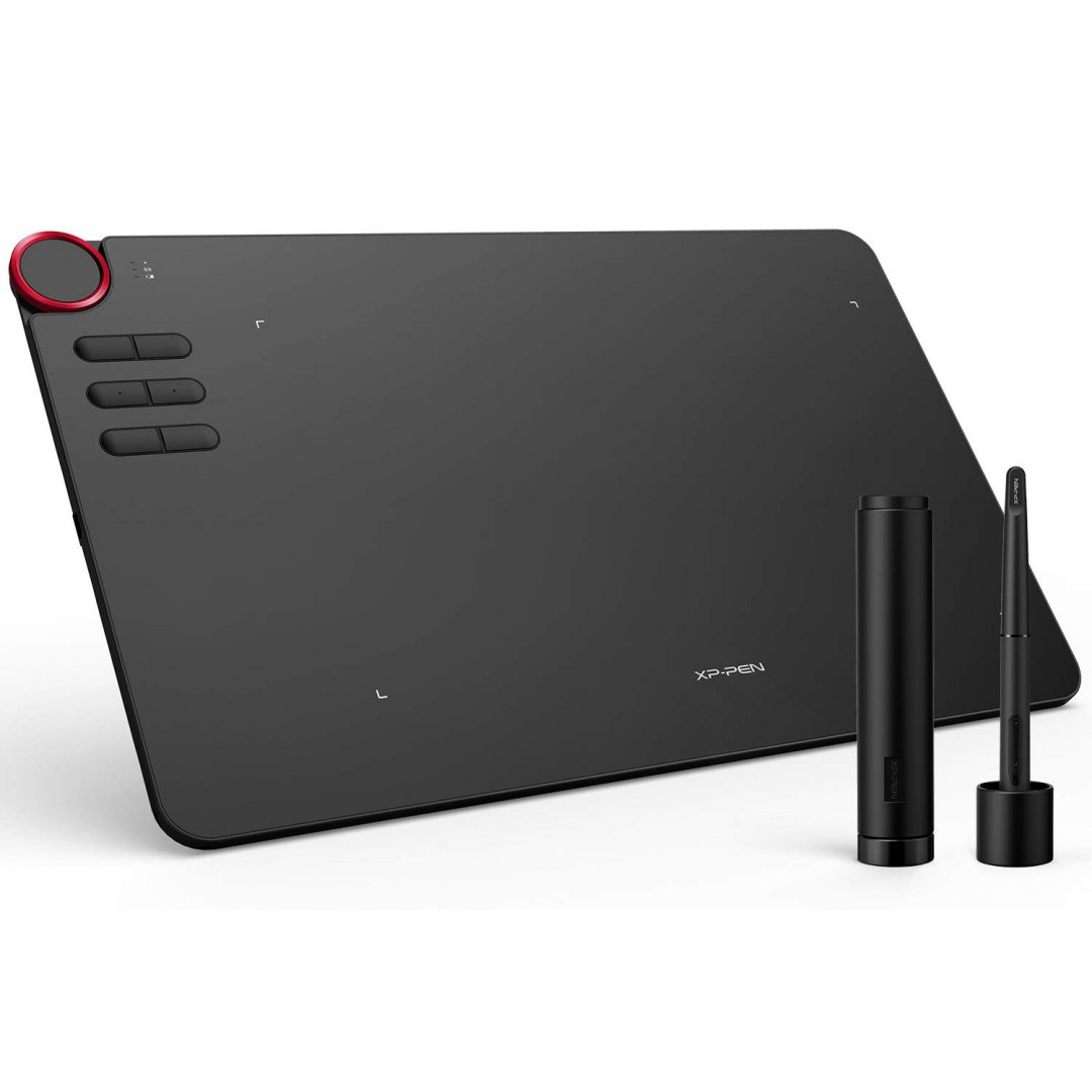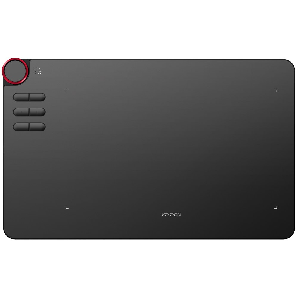 Prezentowany tablet graficzny charakteryzuje się solidnym wykonaniem i wyjątkową wytrzymałością. Duży obszar roboczy, wynoszący 25,4 x 14,2 cm (10’’x 5,62’), pozwala na swobodne tworzenie, a sześć konfigurowalnych klawiszy funkcyjnych znacznie ułatwia codzienne użytkowanie, podobnie zresztą jak wielofunkcyjna czerwona tarcza Red Dial. Model ten ma zaledwie 8 mm grubości, dzięki czemu z łatwością można zabrać go ze sobą praktycznie wszędzie. Co więcej, może on pracować zarówno przewodowo, jak i bezprzewodowo. A to tylko część zalet tabletu graficznego XP-Pen DECO 03 - więcej szczegółów przedstawiamy w dalszej części opisu.