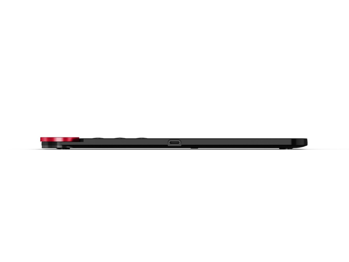 Nowoczesny, choć stosunkowo minimalistyczny design od razu rzuca się w oczy i robi wyjątkowo pozytywne wrażenie. Tablet graficzny XP-Pen DECO 03 nie tylko zresztą wygląda solidnie, ale i taki jest, jako że wykonany został z wysokiej jakości, wytrzymałych materiałów. Wszystkie elementy, włącznie z klawiszami funkcyjnymi z boku urządzenia, utrzymane są tu w kolorze klasycznej czerni. Jedynym wyjątkiem jest wspomniana już czerwona tarcza Red Dial, która zlokalizowana jest w narożnej części tabletu.