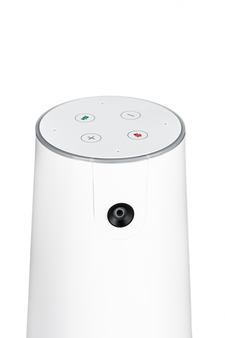 Słaby poziom widoczności i słyszalności, irytujące szumy (w tym również te z otoczenia), pogłos, komplikacje przy podłączaniu – to tylko niektóre problemy, z którymi muszą radzić sobie ci wszyscy, którzy biorą udział w wideokonferencjach bądź spotkaniach online. Prezentowany model problemy te rozwiązuje, łącząc ze sobą kamerę, mikrofony i głośnik w jednym urządzeniu (all in one). Mamy tu m.in. szeroki kąt widzenia i pierścień optyczny, który informuje użytkownika o tym, czy jest dla innych widoczny i czy dobrze go słychać. Mamy również wbudowane algorytmy sztucznej inteligencji, które świetnie sprawdzają się przy tłumieniu dźwięków z otoczenia. Idealną słyszalność każdego z uczestników spotkania zapewniają cztery mikrofony MEMS 360° i głośnik 360°. Łatwą obsługę urządzenia umożliwia specjalny panel dotykowy, a rozpoczęcie pracy z modelem trwa tylko kilka sekund – wystarczy podłączyć go do komputera za pomocą kabla USB. Więcej szczegółów dotyczących zalet tego wszechstronnego sprzętu przedstawiamy w dalszej części opisu.
