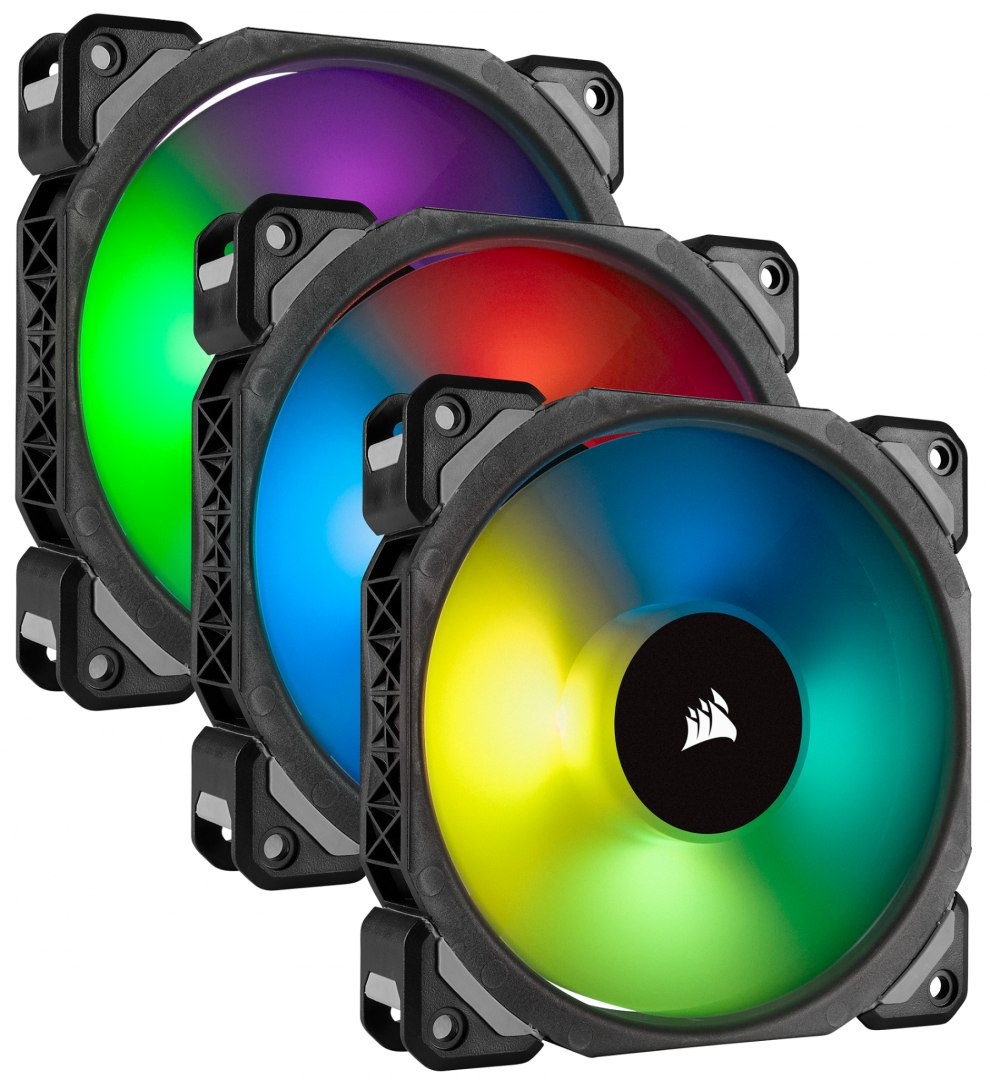 Szukasz zestawu wysokowydajnych wentylatorów, które nie tylko zachwycą doskonałymi parametrami, ale również świetnym podświetleniem RGB? Poznaj Corsair ML 120 PRO RGB 3-pak. Oto trzy wentylatory, które dzięki magnetycznym łożyskom gwarantują perfekcyjną kulturę pracy, a dzięki podświetleniu ARGB w zestawie z kontrolerem Lighting Node PRO oświetlą wnętrze twojego komputera!